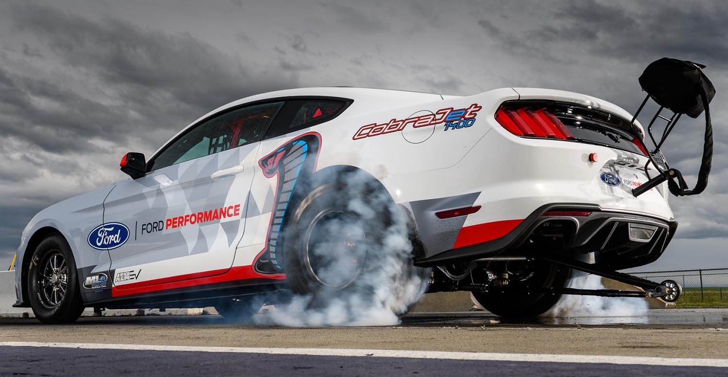 Engineered to shatter towering performance goals without using a drop of fuel, the all-electric Ford Mustang Cobra Jet 1400 prototype has blazed through a quarter-mile in 8.27 seconds at 168 miles per hour and reached 1,502 peak wheel horsepower in recent private development testing.