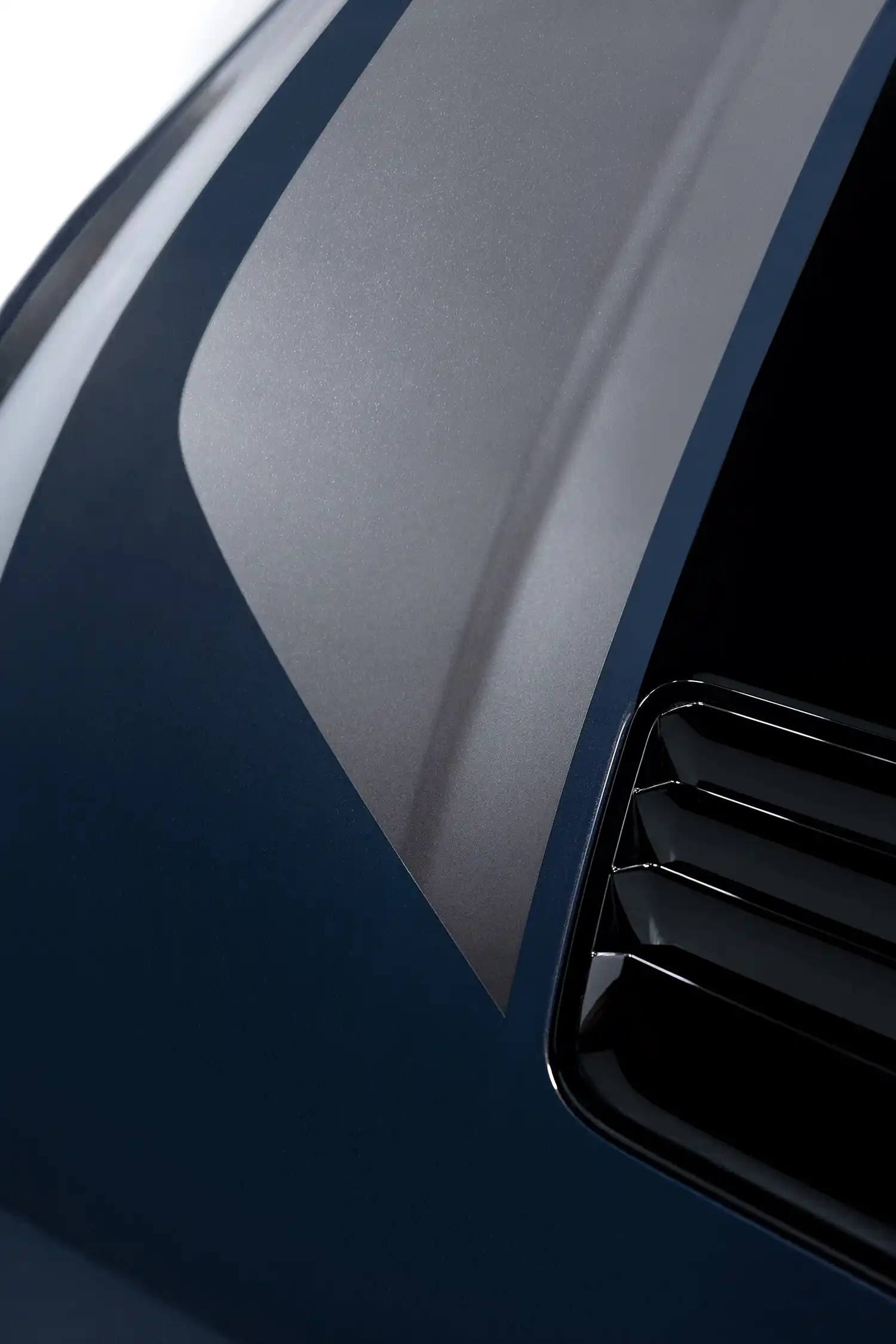 Underscoring the shadowy, muscular physique of the Mustang Dark Horse, available vinyl and hand-painted graphics create a cohesive visual language throughout the vehicle and artfully accentuate its performance.