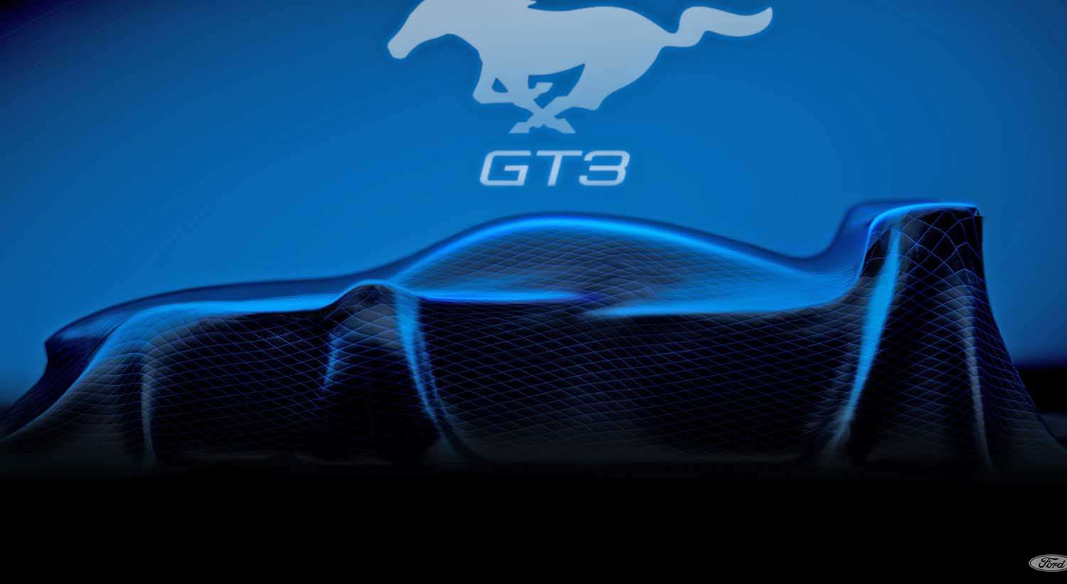 The new Mustang GT3 race car will feature bespoke Short-Long Arm suspension front and rear, rear-mounted transaxle gearbox, carbon fiber body panels, as well as a unique aero package developed to meet GT3 targets.
