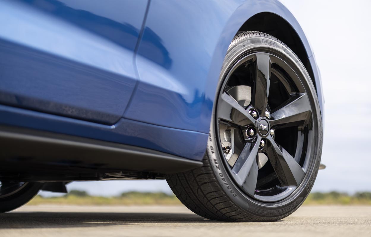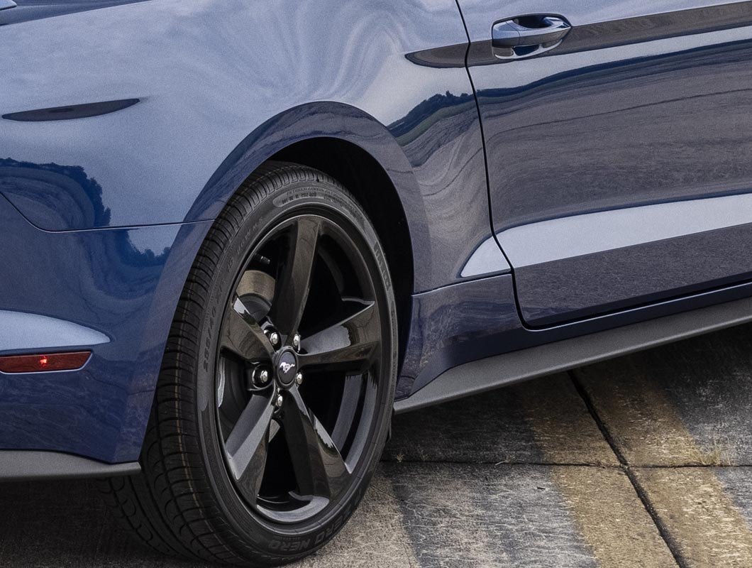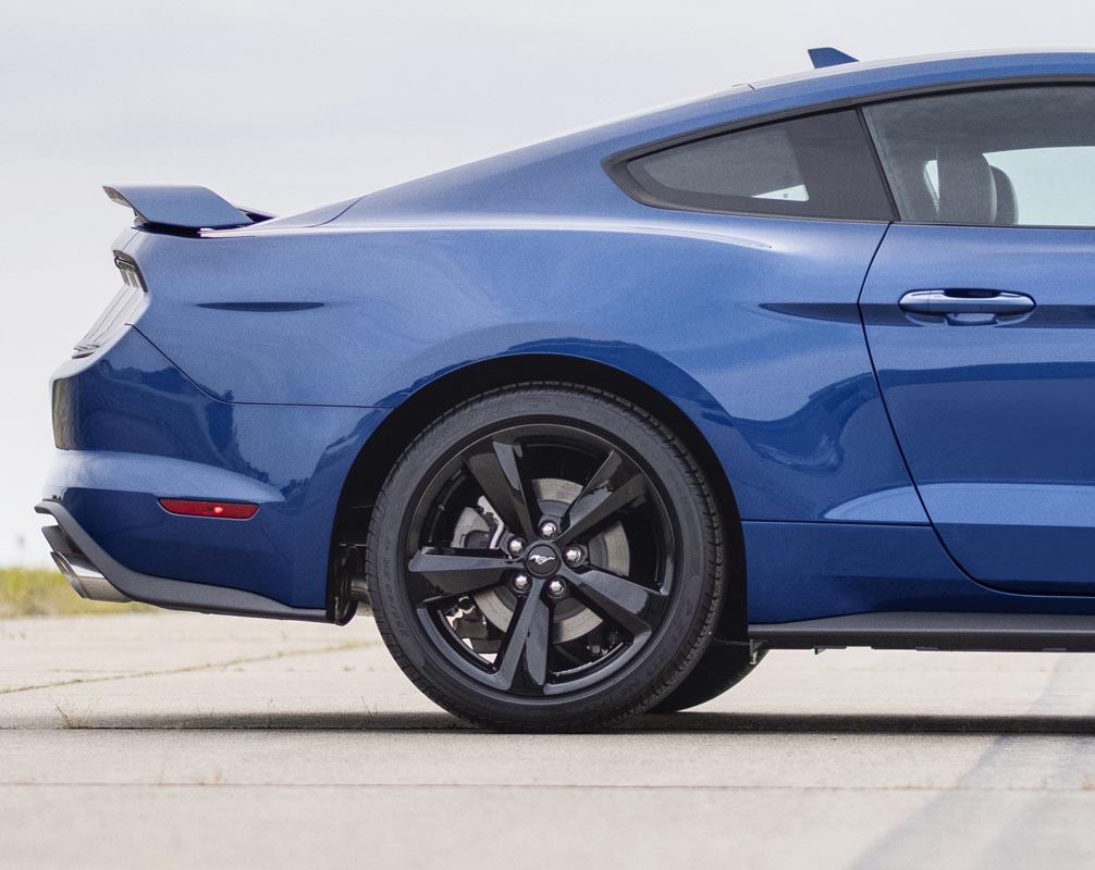 A performance rear wing from the GT Performance Package is available for the fastback model, while spoiler delete is standard for the California Special convertible. The California Special wears unique five-spoke 19-inch painted machined wheels. Under the hood, this special edition features a signature strut tower brace with California Special badge atop its 5.0-liter V8 engine.