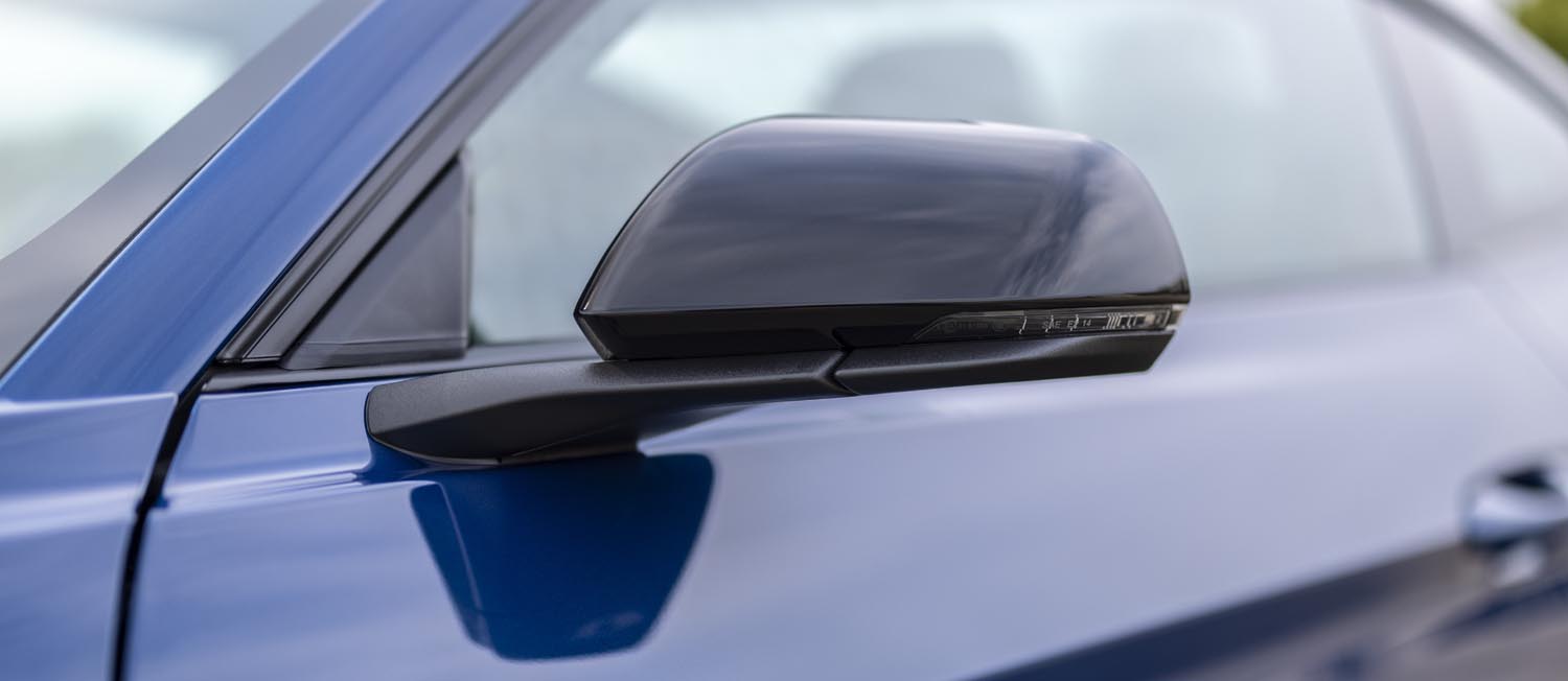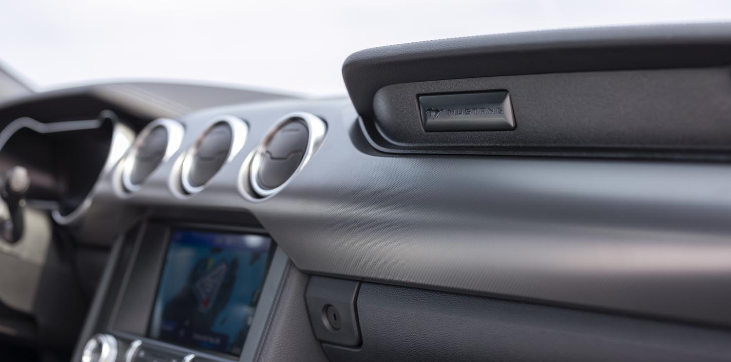 The heritage-inspired “GT/CS” side stripe trademark traces from the front fender to the signature rear fender scoop. A California Special badge in Ebony Black and Race Red script adorns the trunk lid, while the honeycomb grille with “GT/CS” badge provides a unique look. A larger front splitter from the GT Performance Package underscores the icon’s handling prowess.