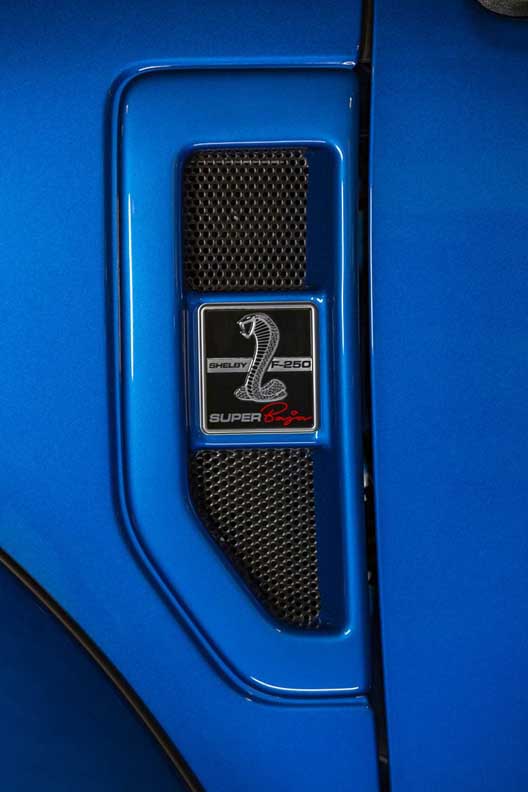 Shelby performance trucks are legendary for featuring comfortable, handsome interiors. The Shelby F-250 Super Baja has exclusive full leather seat covers, accents and embroidery, stainless steel gauges with a speedometer recalibration, custom carbon fiber accents, embroidered floor mats and billet racing pedals. Each comes with Shelby Super Baja badges and CSM serialized plate on the dash.
