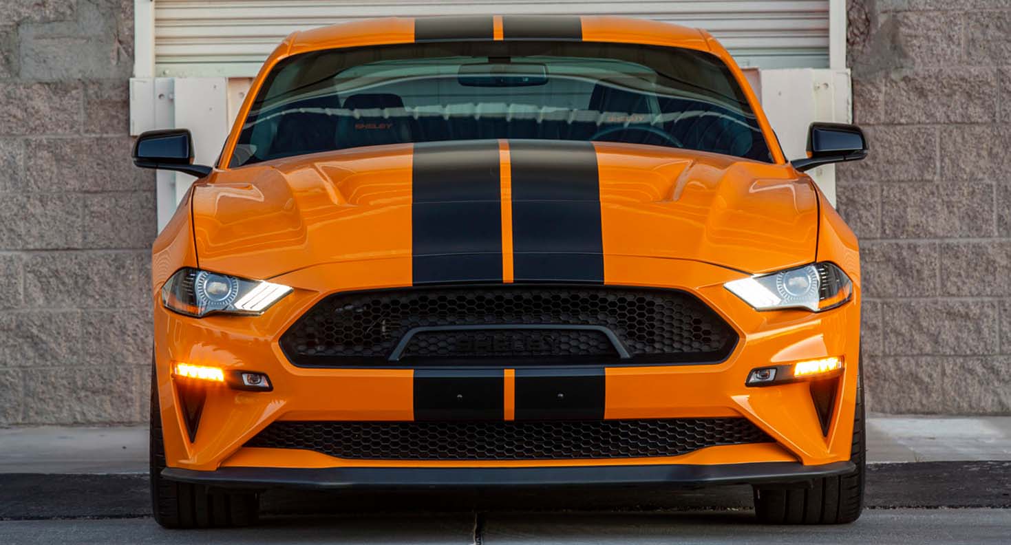 The Shelby GT is designed for intense personalization and daily driving. The 480 horsepower V8 powered car has a deep draw hood with functional vents, Ford Performance suspension, Borla cat-back exhaust, 20-inch wheels shod with high performance tires, Shelby styling, custom interior and more. Starting from just $62,310 (including base car***), it is an affordable Shelby suited for daily use while still capable for quick, spirited driving on the track or open road. Shelby offers many custom parts for the car, including the “S/C” package that adds a 700* horsepower supercharger. Enthusiasts can choose between a manual or automatic transmission, as well as fastback or convertible.