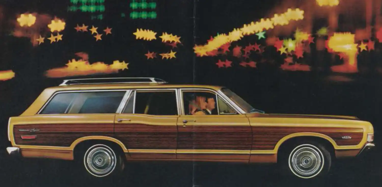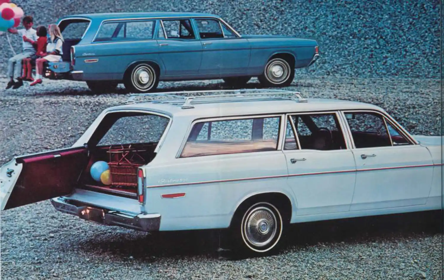 Station wagons came in three different models: “Fairlane”, “Fairlane 500”, and “Torino Squire.” All wagons came equipped with Ford’s “Magic Doorgate” two-way tailgate, and were available with an optional rear-facing third seat which increased the car’s carrying capacity from 6 to 8 people. Torino Squire models came standard with simulated woodgrain side panels, and had the more refined trim and upholstery of the Torino sedans. Unique station wagon options included a chrome roof rack and a power rear window.