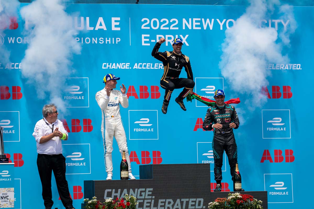 António Félix da Costa led from the start to Chequered Flag in the second race of the New York City E-Prix double-header, the first victory of the season for da Costa and his DS TECHEETAH team.