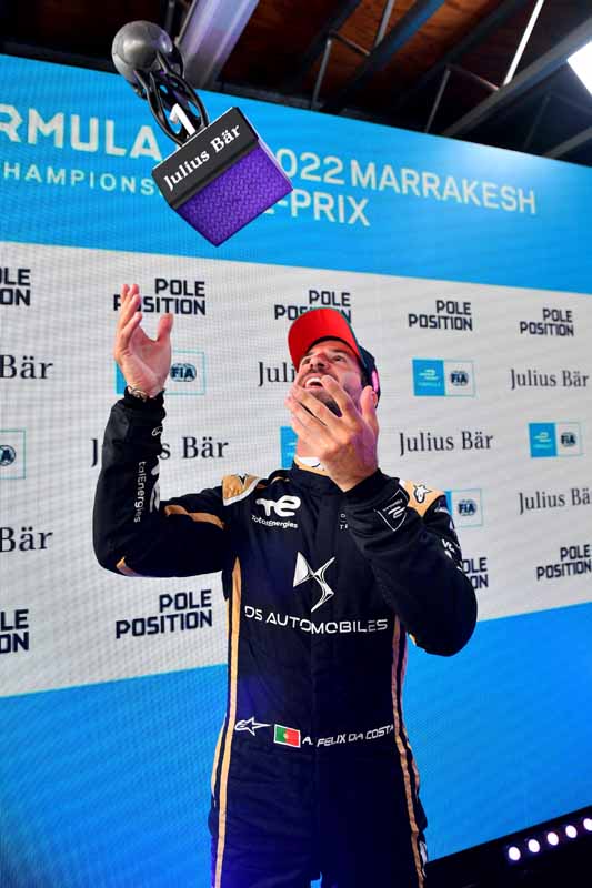 ANTÓNIO FÉLIX DA COSTA, DS TECHEETAH, #13 said: “Well we had a good game plan. It looked like Edo had a little bit of an edge on us. I tried to keep it modest until the end. Other things like in the beginning and middle of race compromised my end. I’m here, I’m happy, it’s so great to be back in Marrakesh. I’ve always had good races here, even when I crashed from the lead near the end of a race. So amazing job to everyone here again. First podium of the season for me. It’s been a tough one. It’s been hard to kind of punch through the wall. The team has been great picking me up and still believing in me. So that’s awesome and thanks for them for giving me a great car today. We tried. In the end it looked like JEV didn’t quite have it and it compromised my race a little bit but it’s part of the game. I wear the team badge and that’s how it is.”