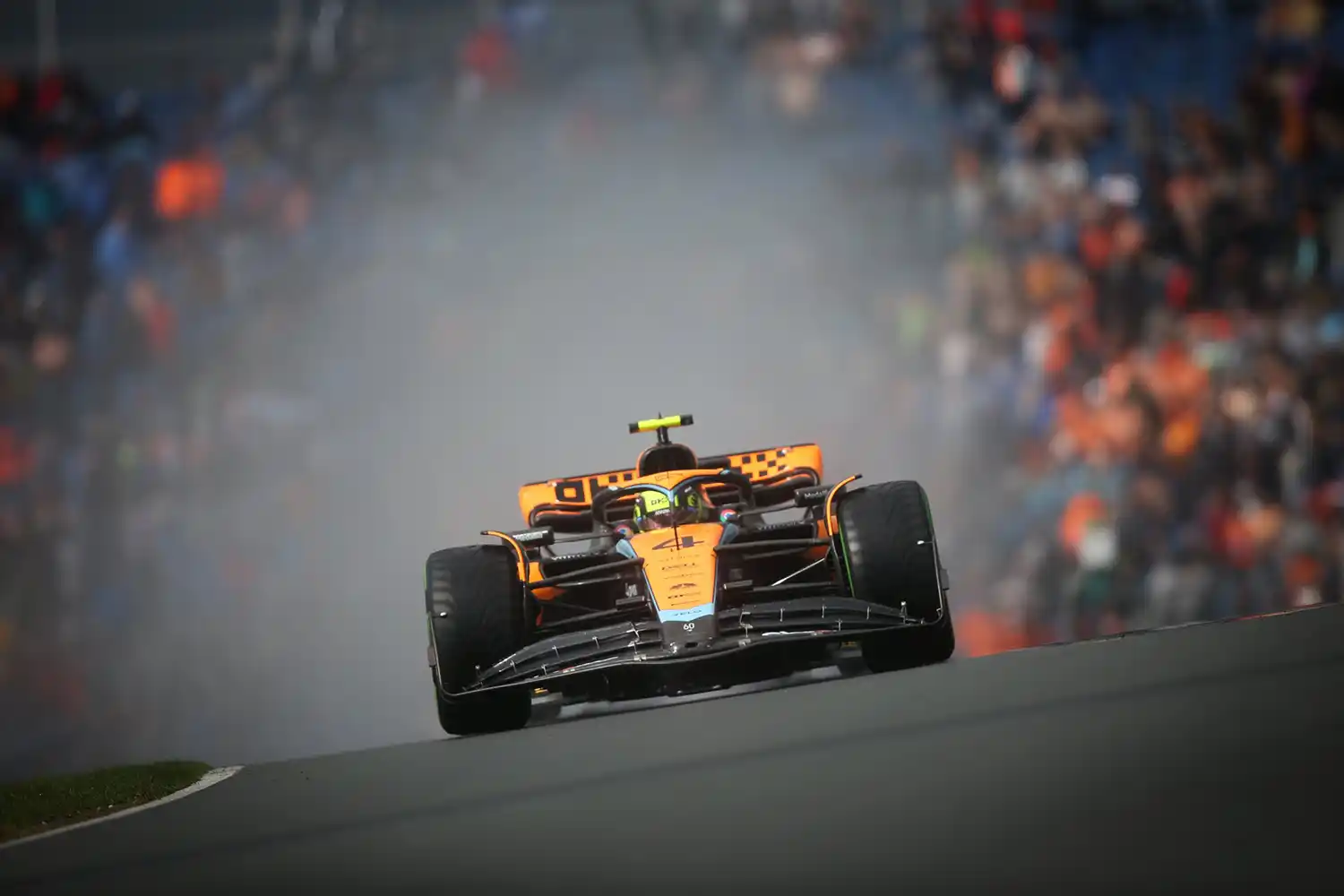 Red Bull Racing’s Max Verstappen took pole position for his home race at Zandvoort half a second clear of McLaren’s Lando Norris in a wet/dry qualifying for the 2023 FIA Formula 1 Dutch Grand Prix that was twice interrupted by red flags.