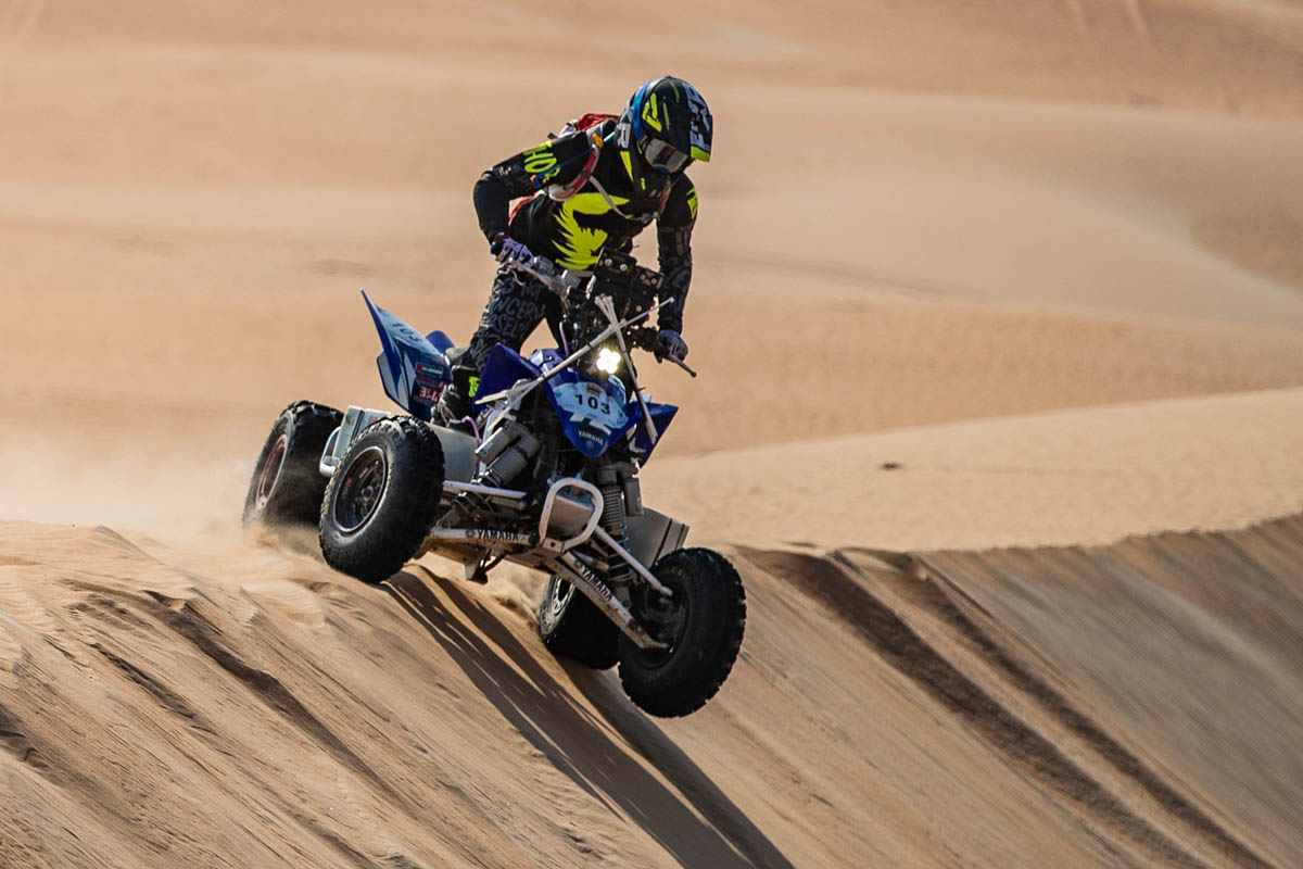 But hopes of a UAE victory in the Abu Dhabi Desert Challenge soared as Abdulaziz Ahli swept into a massive lead in the quads category on a disastrous day for Argentina’s Manuel Andujar. Another Emirati rider, Sultan Al Balooshi, climbed to seventh place overall in the RallGP bikes.