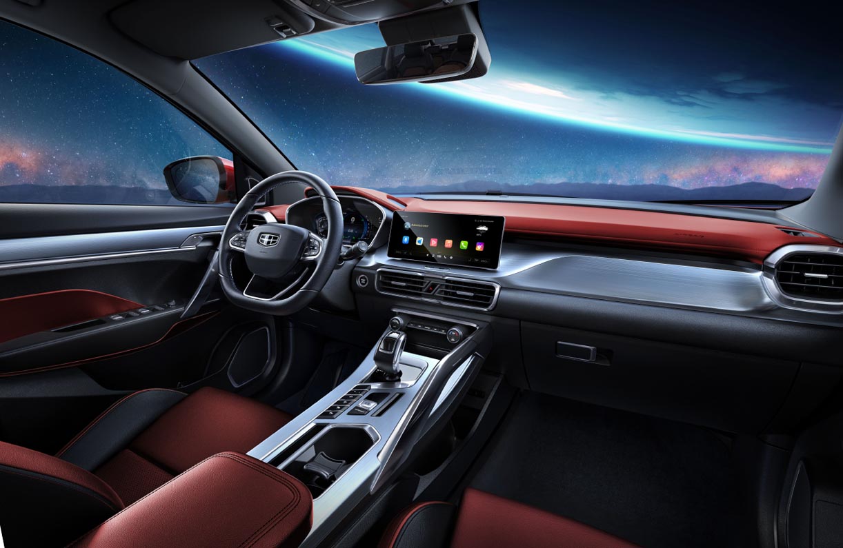 Of course, to cater to young consumers’ preference for passionate and sporty models, the design of Coolray’s appearance is also filled with athletic elements. Drawing inspiration from the sporty postures and lifestyles of young people, the Coolray designers sought to demonstrate the beauty of youth and strength with the model. The two-color body, the smooth, compact waistline, the large five-spoke wheels, the spoilers at the bottom, together with other details, have combined to make Coolray look vibrant and dynamic. For internal decoration, Coolray has adopted advanced materials and high-tech configurations for more exquisite textures and a technology-intensive design, including the suspended console covered with large soft materials, the 10.25-inch console screen, the liquid crystal dashboard, the brushed metal decoration panel, as well as the panoramic sunroof which all add to the luxurious taste. At the same time, the lively and sporty red-black combination of Coolray echoes the aesthetics standards of young consumers.