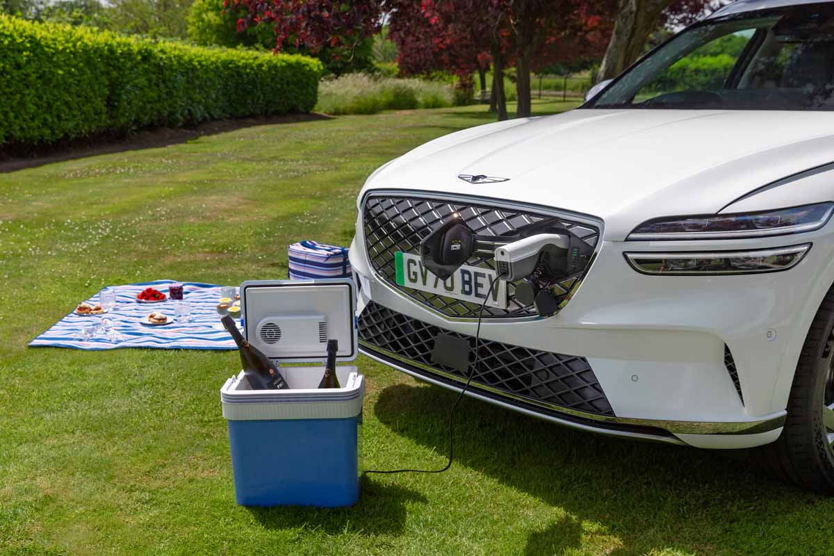 To celebrate Electrified GV70’s European unveil at Goodwood Festival of Speed, four short films will go live across the weekend. Using vehicle-to-load (V2L technology) Electrified GV70 is shown powering multiple Goodwood household appliances and assisting with wider estate services – showcasing the innovative technology of the car and the multiple ways in which it can be used. The vehicle-to-load function works by using the car’s battery to supply auxiliary power to electrical devices outside of the car, with an output of up to 220v or 3.6kw – more power than is generated by the average house. The car can become a mobile power bank to supply electricity to anything from gardening equipment and domestic appliances to camping equipment and e-bikes.