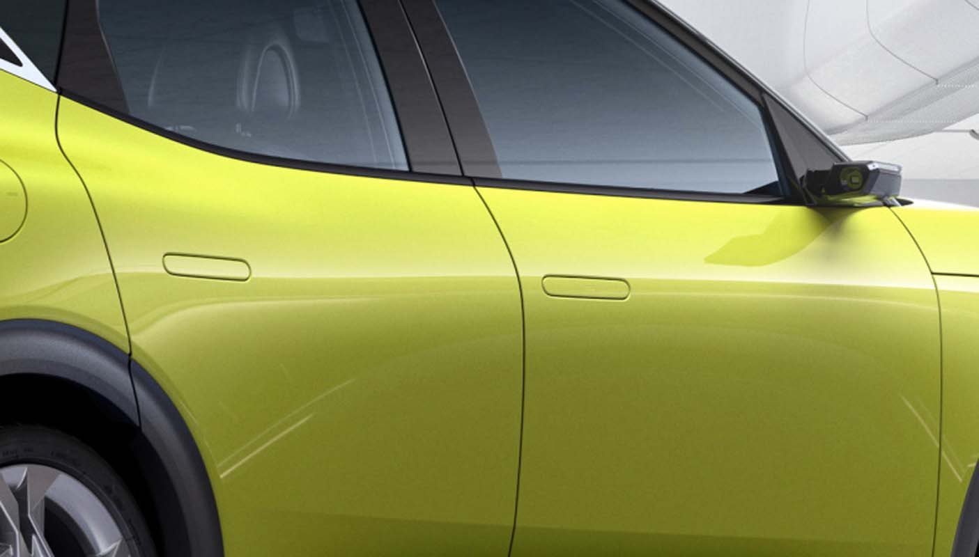 The chrome line flowing from the windshield to the top of the Daylight Opening (DLO) window extends to a C pillar-garnish design that embodies the image of ‘electric’, adding a distinctive characteristic to the EV model.