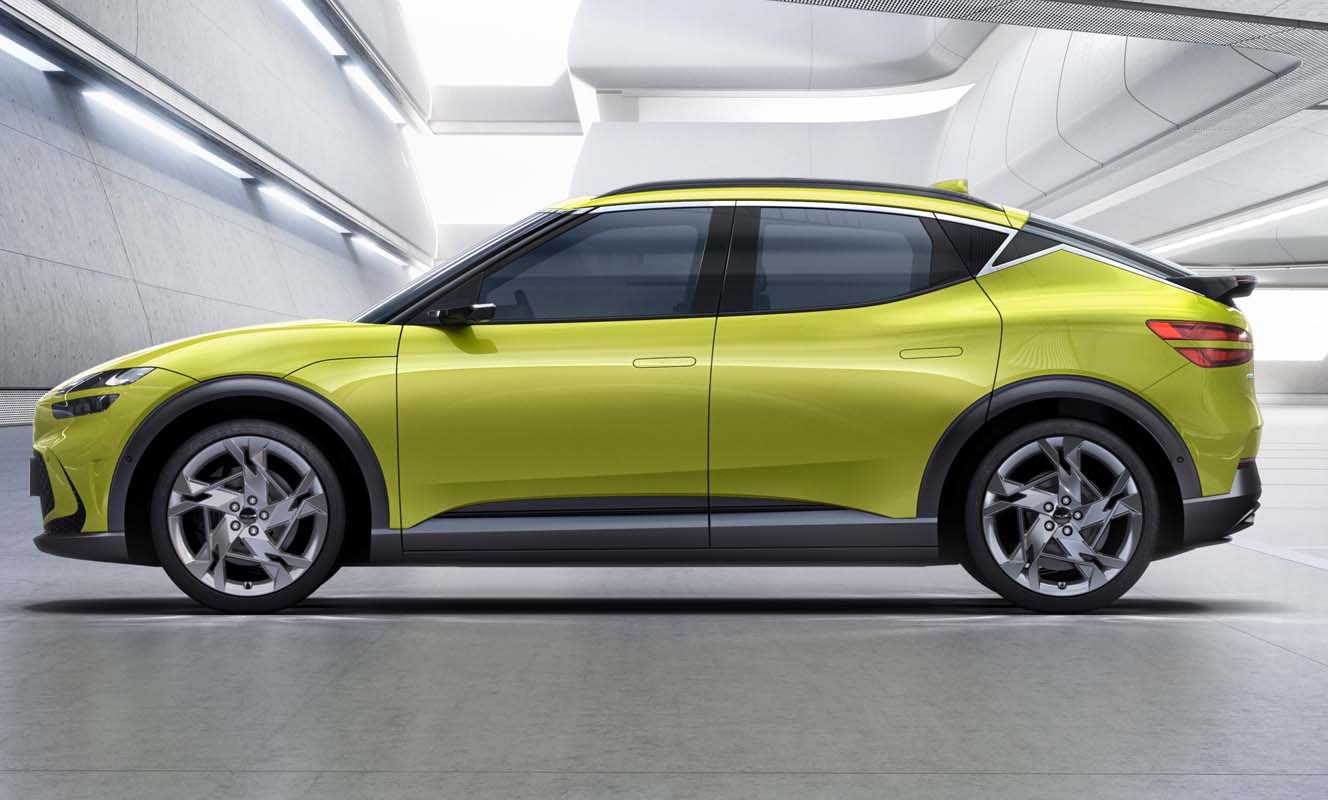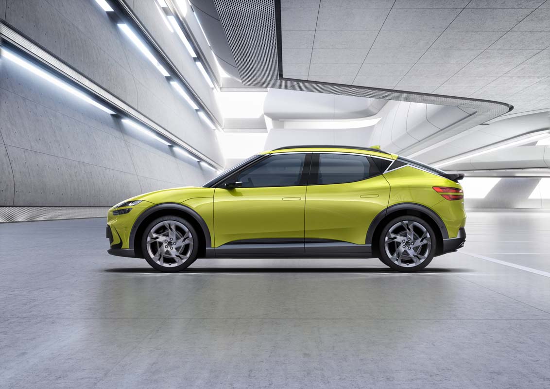 When viewed from the side, the GV60 reveals the smooth and dynamic profile of a high-performance coupe. A simple yet sharp silhouette running from the front hood to the rear spoiler completes a more progressive character.