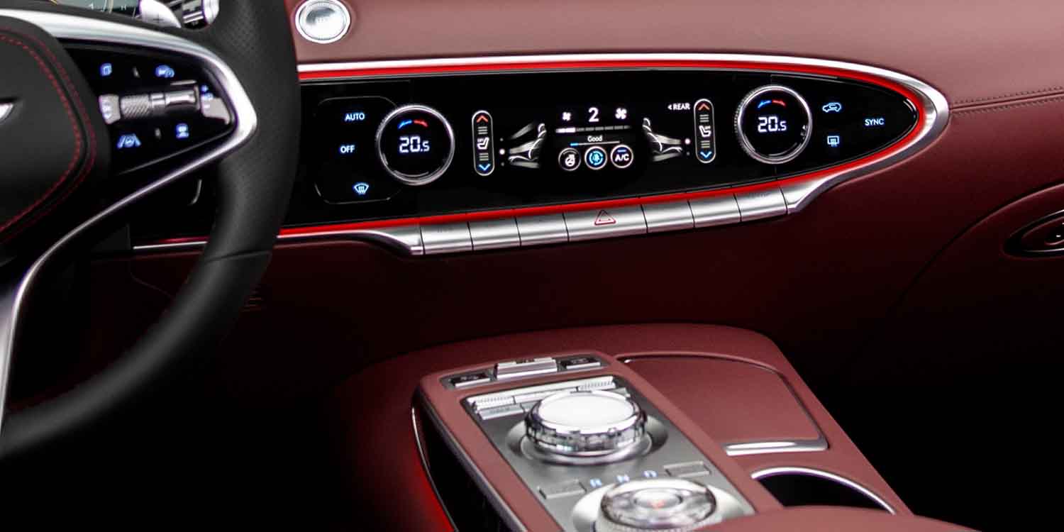 GV70 will offer consumers a plethora of interior color combinations curated to their taste, including a unique Ocean Waves/Pine Grove two-tone look and a Gray/Velvet Burgundy two-tone option.