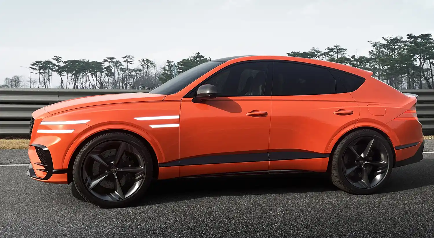 Genesis’ rear-wheel-drive platform provides the basis for the GV80 Coupe Concept’s long hood and generous dash-to-axle proportions. These refined proportions are further emphasized by the anti-wedge parabolic line. It is complemented by the muscular blisters and fenders that contrast with the vehicle’s elegant coupe silhouette.