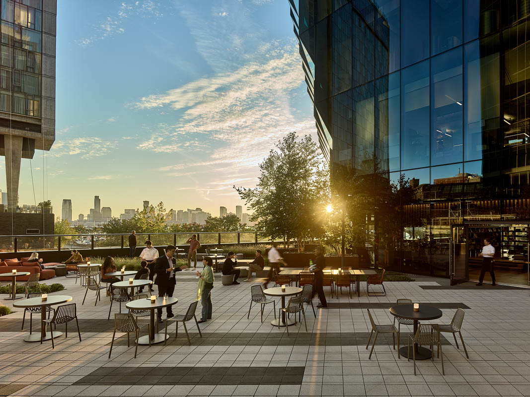 - The Terrace Garden: The outdoor terrace and garden offer guests an unobstructed view of the High Line. Spanning about 9,500 square feet (approximately 882 square meters), the terrace is surrounded by a traditional Korean landscape of white sand and gravel and adorned with greenery, extending Genesis’ views to the Hudson River and the High Line, the artery of Lower Manhattan.