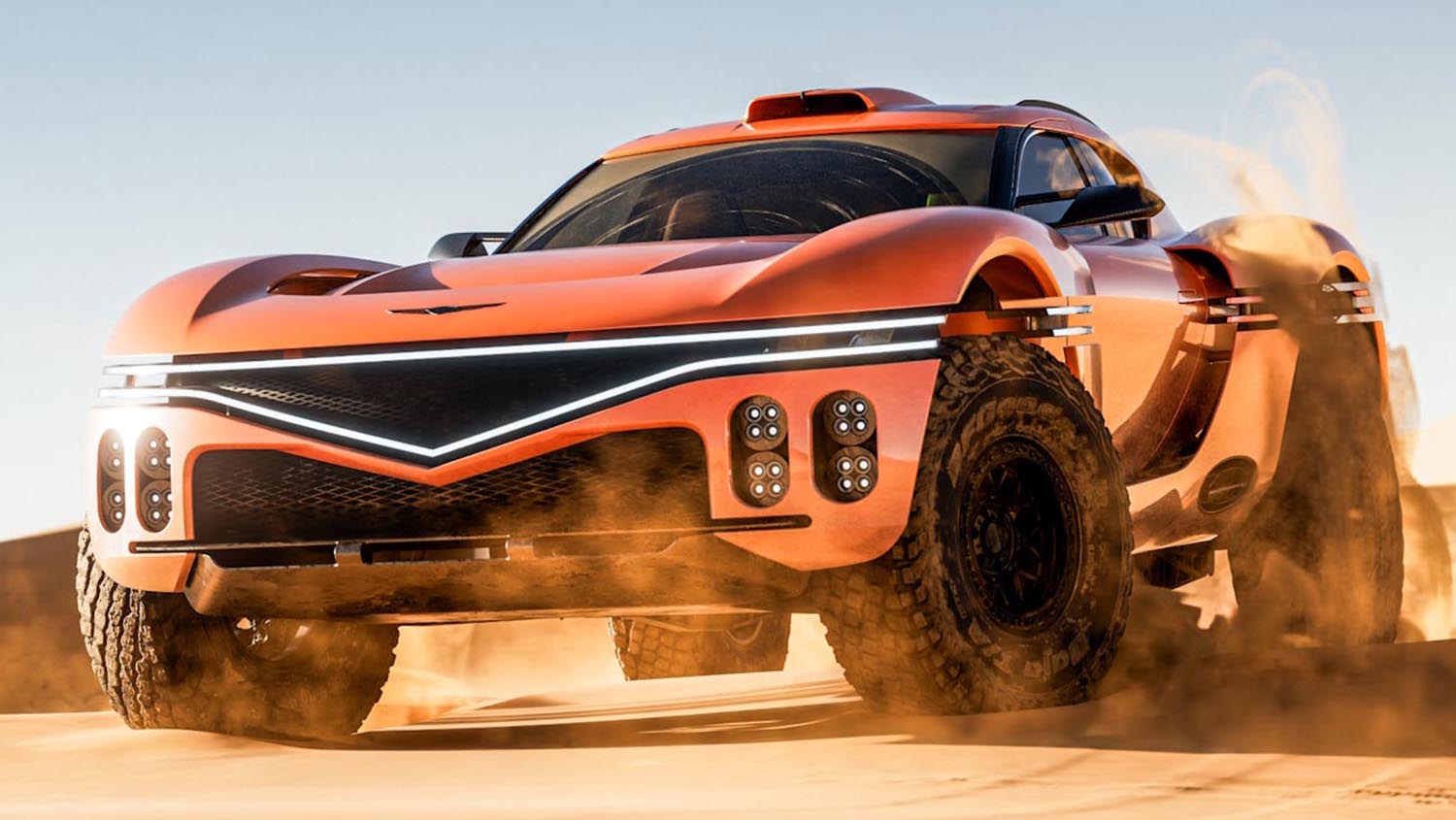 The Genesis X Skorpio Concept is powered by a high-performance V8 engine that sets a new benchmark for off-road luxury. This powerplant delivers a staggering 1,100 horsepower and 850 pound-feet of torque to conquer vertical dunes. Aerodynamic optimization helps minimize drag while maximizing stability when the vehicle is at high speed or mid-air. A four-point harness system and reinforced structural components provide the highest levels of safety for all occupants. This performance package is specifically tailored to the automotive culture of the Middle East, where high-speed desert recreation is a prominent pastime. The combination of raw V8 muscle and precision engineering makes it a formidable predator in the sand.