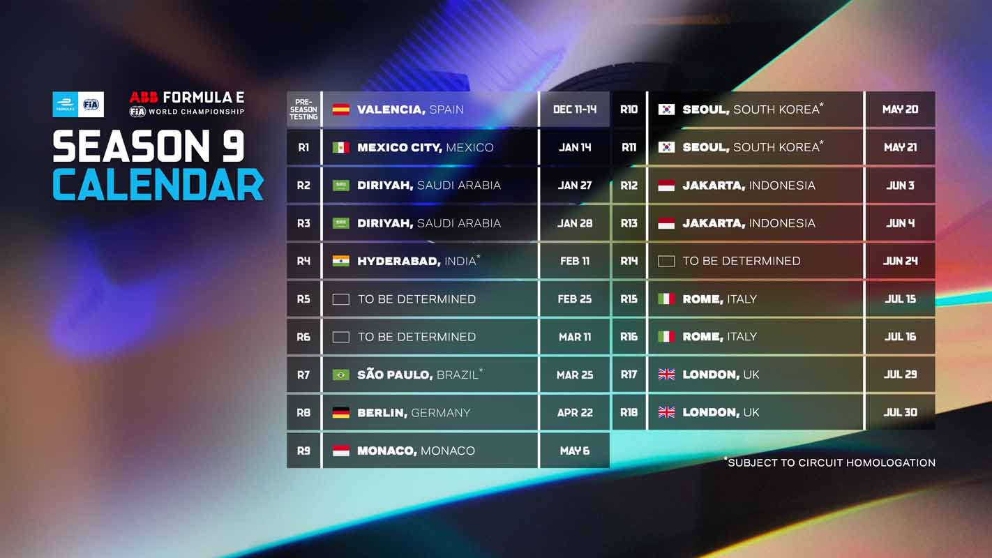 “The Season 9 calendar of the ABB FIA Formula E World Championship is our most expansive and dynamic racing schedule yet and I cannot wait to get started. We will continue to push the international boundaries of all-electric street racing with E-Prix in Hyderabad and São Paulo, while maintaining the hugely-popular races in Diriyah, Mexico City, Berlin, Monaco, Rome and London with Jakarta and Seoul now established on the calendar. We are also working hard to include Cape Town and a race in the USA when the provisional calendar is updated later this year.”