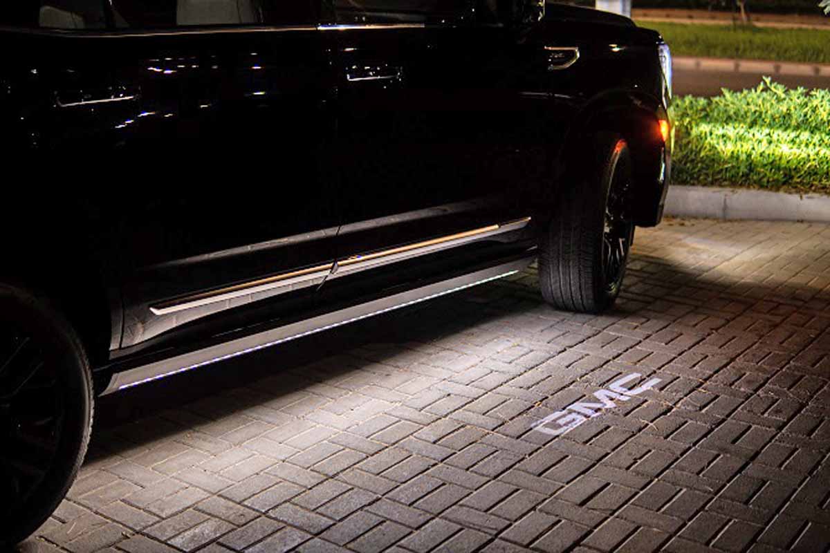 The 30th anniversary edition Yukon Denali’s darker theme illuminates evening drives and welcomes driver and passengers with a GMC logo projection on the perimeter lighting, while the illuminated front and rear door sill plates embossed with the Denali badge ensure sophistication at every touchpoint.