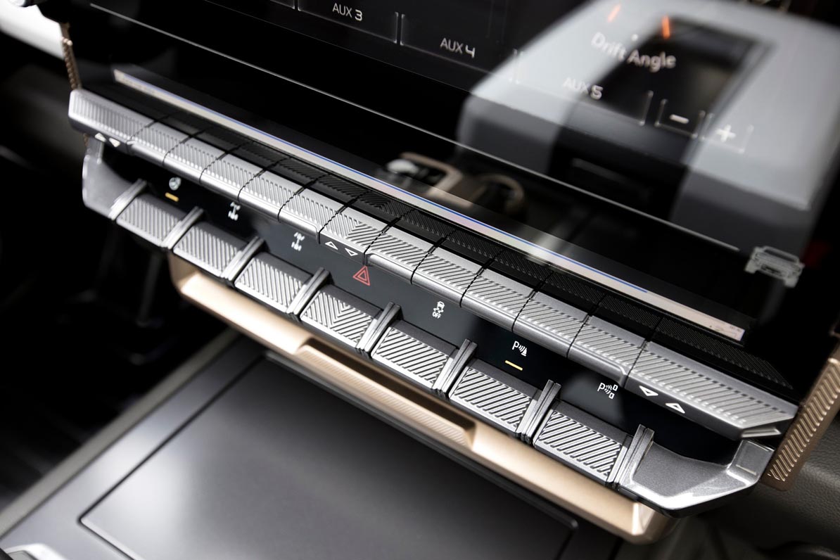 The five-passenger HUMMER EV’s bold cabin design is geometric and textured. Its newly developed surface materials contribute to the premium look and feel commensurate with GMC’s high standards for craftsmanship and ruggedness.
