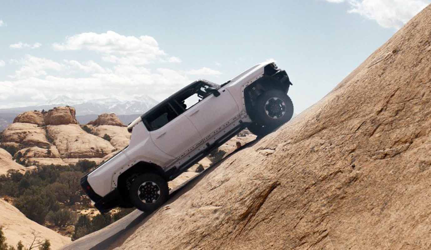 2Available on EV3X equipped with the available 24-module battery. Based on a full charge with Extreme Off-Road Package. Actual range may vary based on several factors, including temperature, terrain, battery age, loading, use and maintenance.