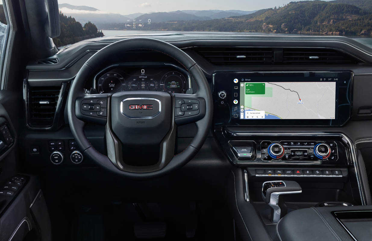 The new Sierra features an elevated exterior design and all-new, expressive interiors, with enhanced technology integration, including a large, 13.4-inch-diagonal touchscreen with Google built-in1 compatibility.