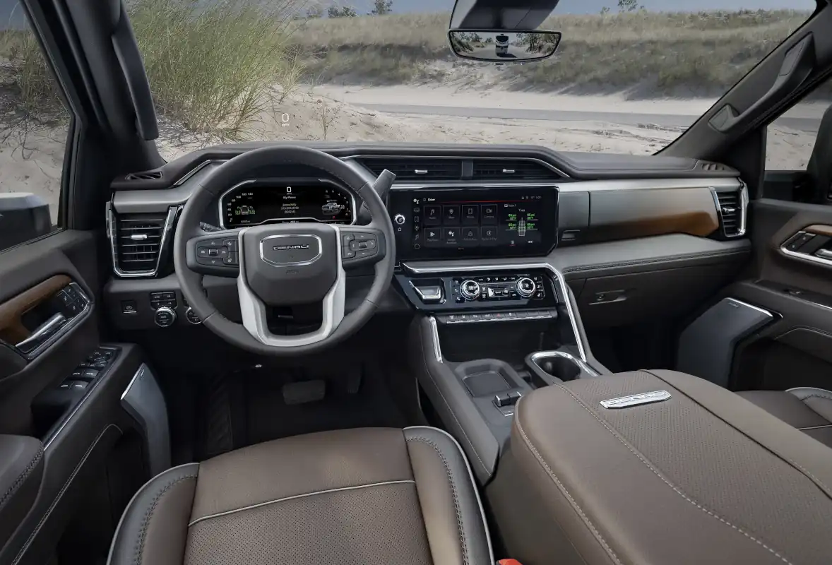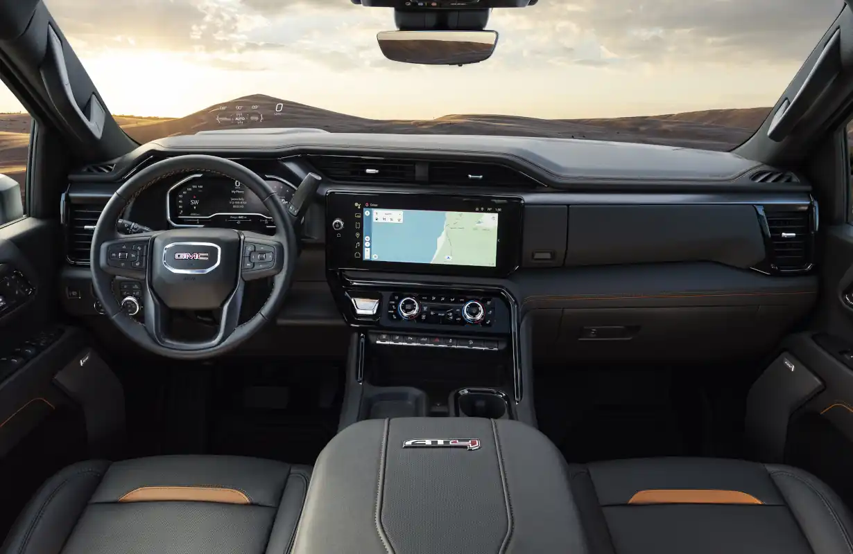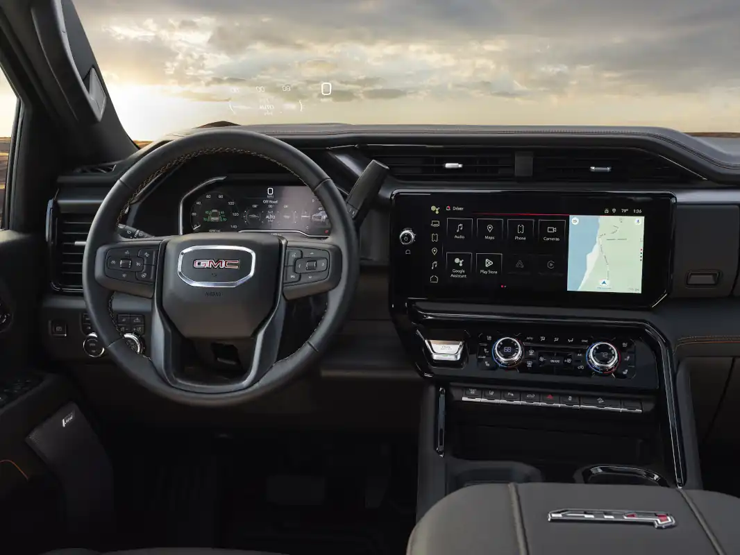 The centerpiece of Sierra’s high-tech interior cabin is the new available 13.4-inch diagonal tablet-style touchscreen — the largest infotainment touchscreen in its class1. Situated in landscape orientation, the touchscreen offers a user-friendly, customizable experience. An available multicolor 15-inch-diagonal head-up display and a new available 12.3-inch-diagonal digital instrument cluster are also added to in 2024 model year. Together, this creates over 40 inches of immersive digital displays helping to provide an engaging, customizable and comprehensive driving experience.