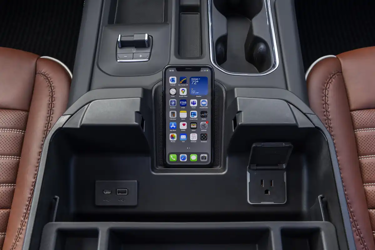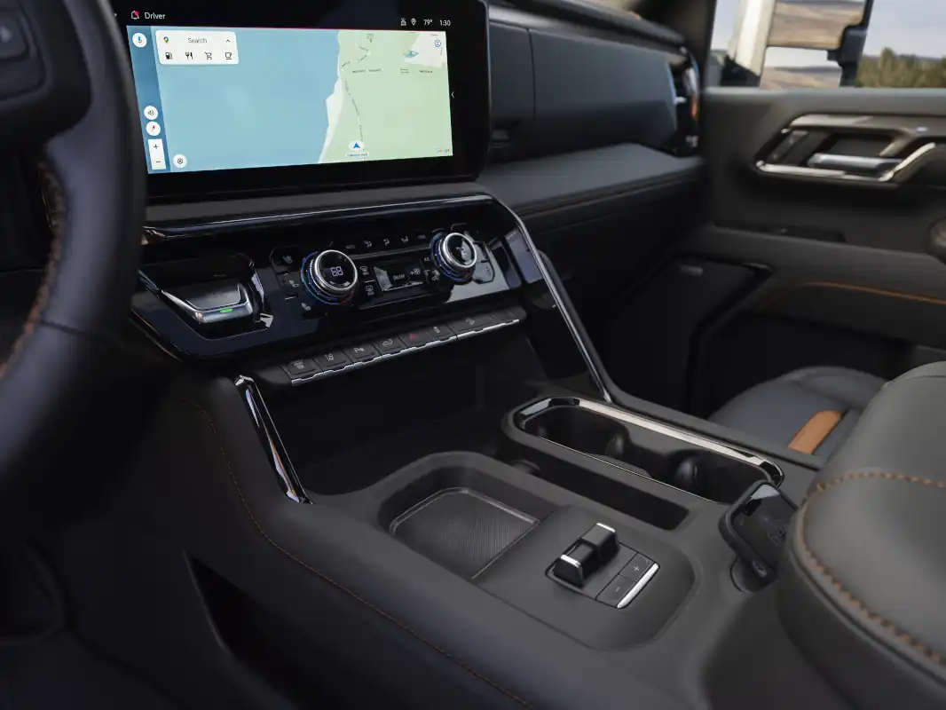 The all-new touchscreen infotainment center can be configured to a user’s preference, including the ability to operate multiple apps simultaneously in a “split-screen” view (e.g., a Navigation8 app running on the left side of the screen and a Music app on the right). Sierra HD’s infotainment system will also integrate Google built-in9 (on all trims except Pro) allowing customers to connect virtually every aspect of their daily lives within their vehicle. The system is compatible with both Wireless Apple CarPlay10 and Wireless Android Auto11.