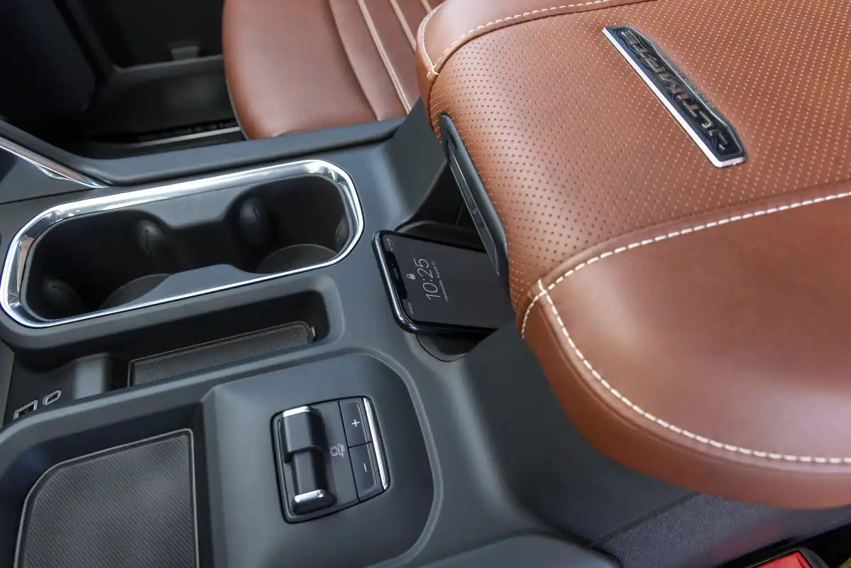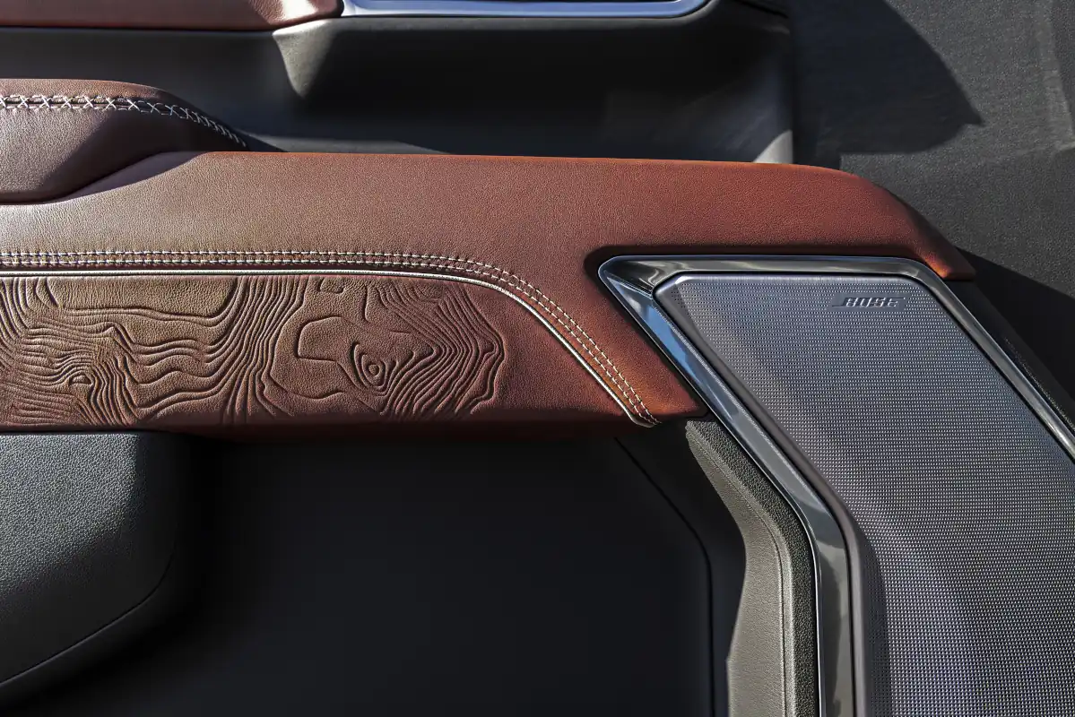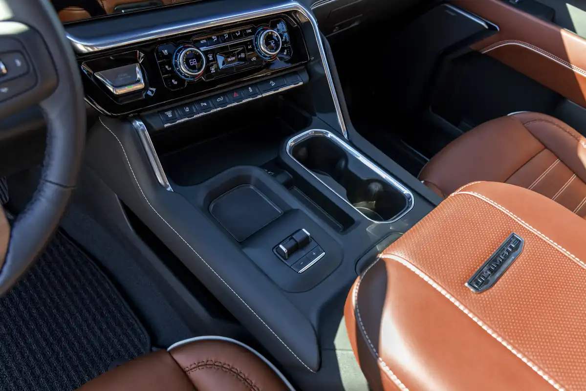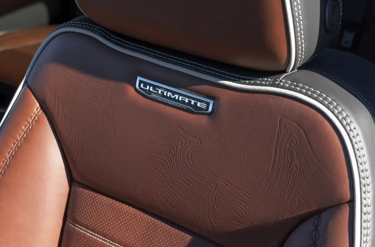 - Full-grain leather front and rear seats with the Denali Ultimate badge on the front seatbacks and center console lid