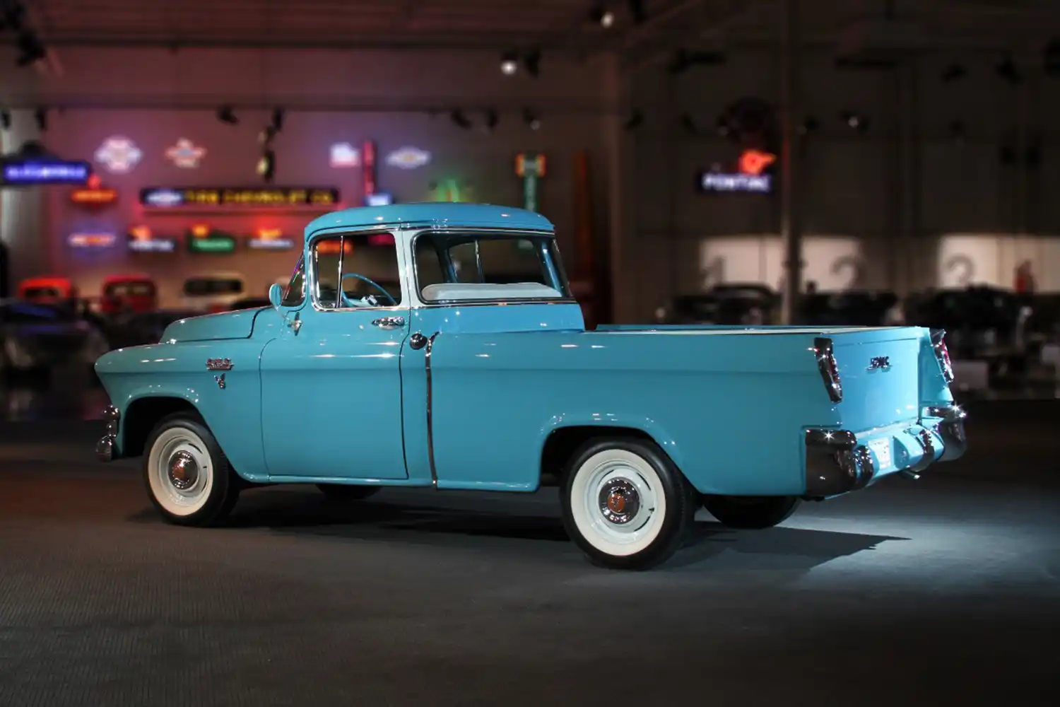 The Suburban was GMC version of the Chevrolet Cameo pickup. It was first known as the “Town and Country”. Styling was virtually unchanged from 1955 and features sleek sides, unique tail lights and a panoramic windshield.