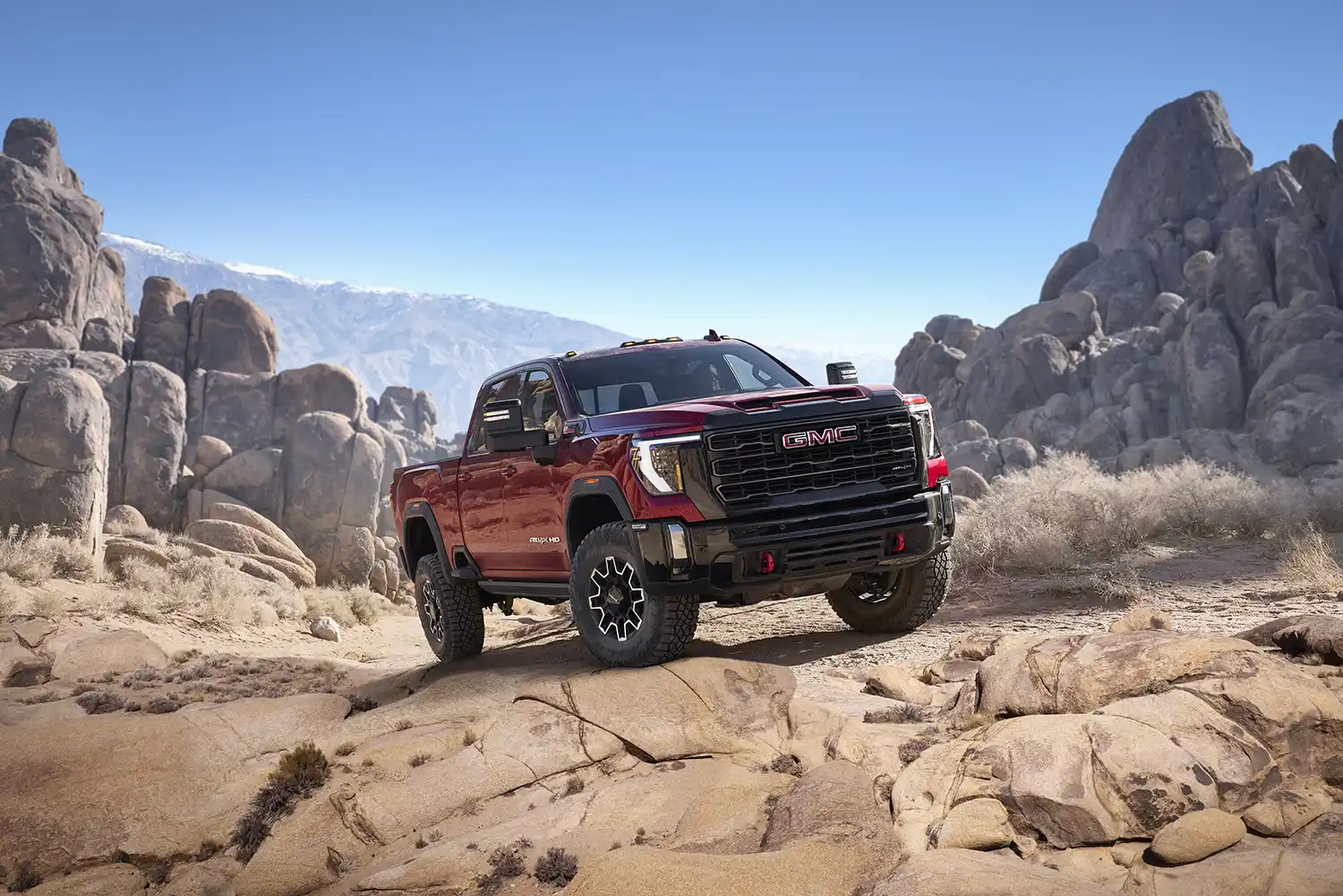 The Sierra HD AT4X rounds out GMC’s lineup of premium off-road trucks, balancing increased off-road capability, smooth on-road handling, offering the most trailering technology in its class2 and first-class luxury and comfort features.