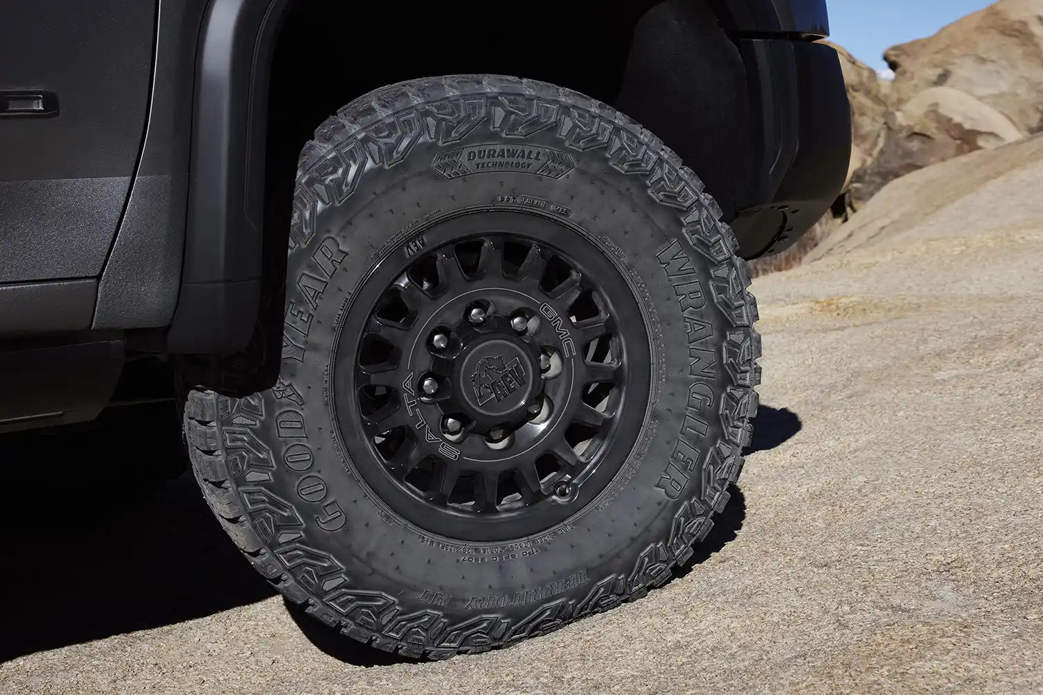 The first-ever Sierra HD AT4X offers the luxurious appointments and comfort in a premium, off-road-capable HD pickup, with the exclusive Obsidian Rush interior that features power massaging front seats and full-grain leather-wrapped seats throughout as well as authentic Vanta Ash wood décor and 12-speaker Bose® Premium Series audio system with Centerpoint surround technology. The AEV Edition also features the AEV logo on the front-seat head restraints and unique AEV-branded floor liners.