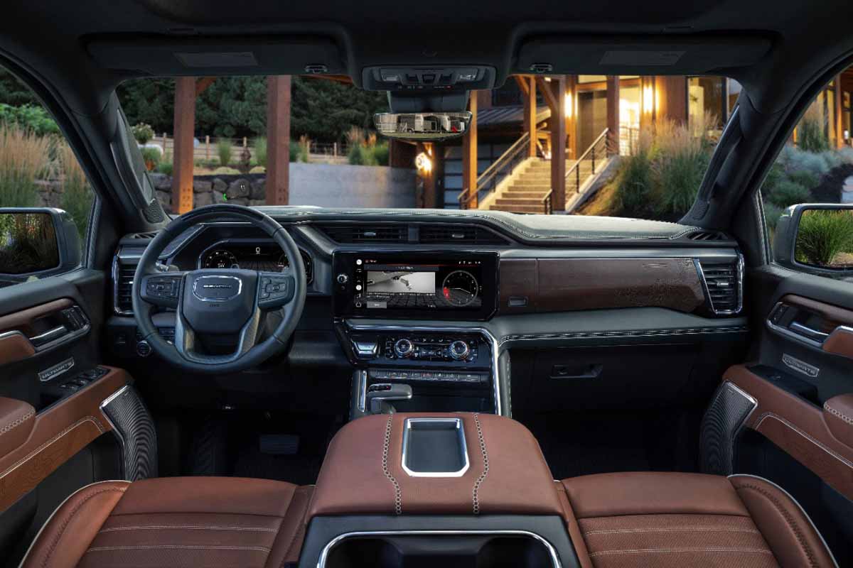 The new Sierra line-up boasts an elevated exterior design and all-new, expressive interiors across the full line-up. The centerpiece of the new Sierra’s redesigned interior (SLE trim an above) is an all-new and customizable 13.4-inch-diagonal horizontal touchscreen, along with a 12.3-inch-diagonal digital, configurable instrument cluster which provides users with incredible levels of personalization and intuitive engagement, and giving the driver as an unimpeded view of vital vehicle commands to ensure they feel in full control while out on the road. A new, unique interior design includes cockpit-oriented instrument panel along with a new, more functional center console that feature electronic precision shift on models with front bucket seats.
