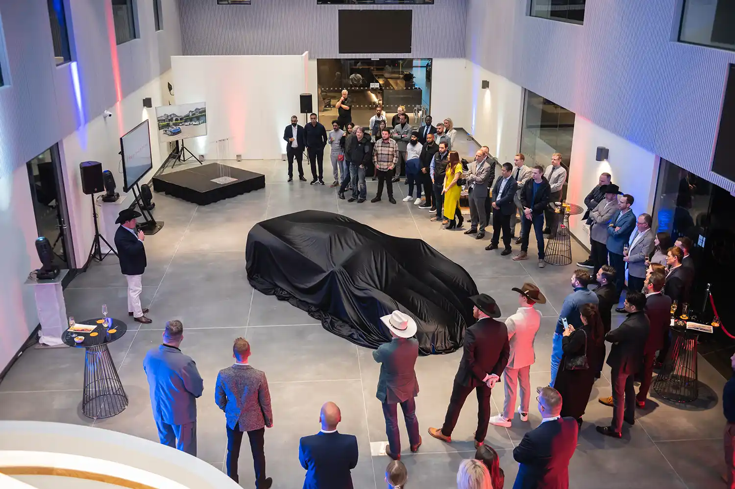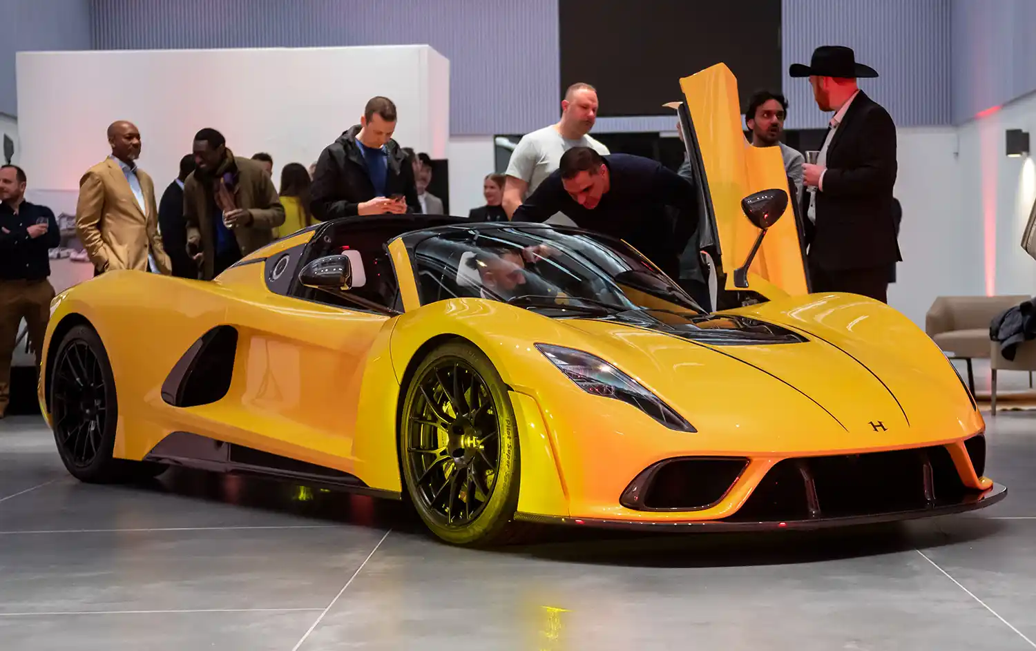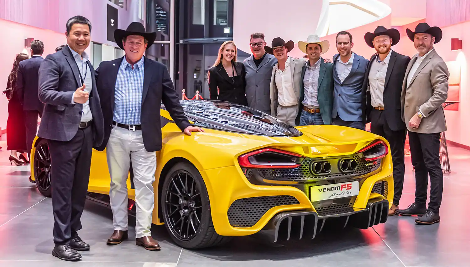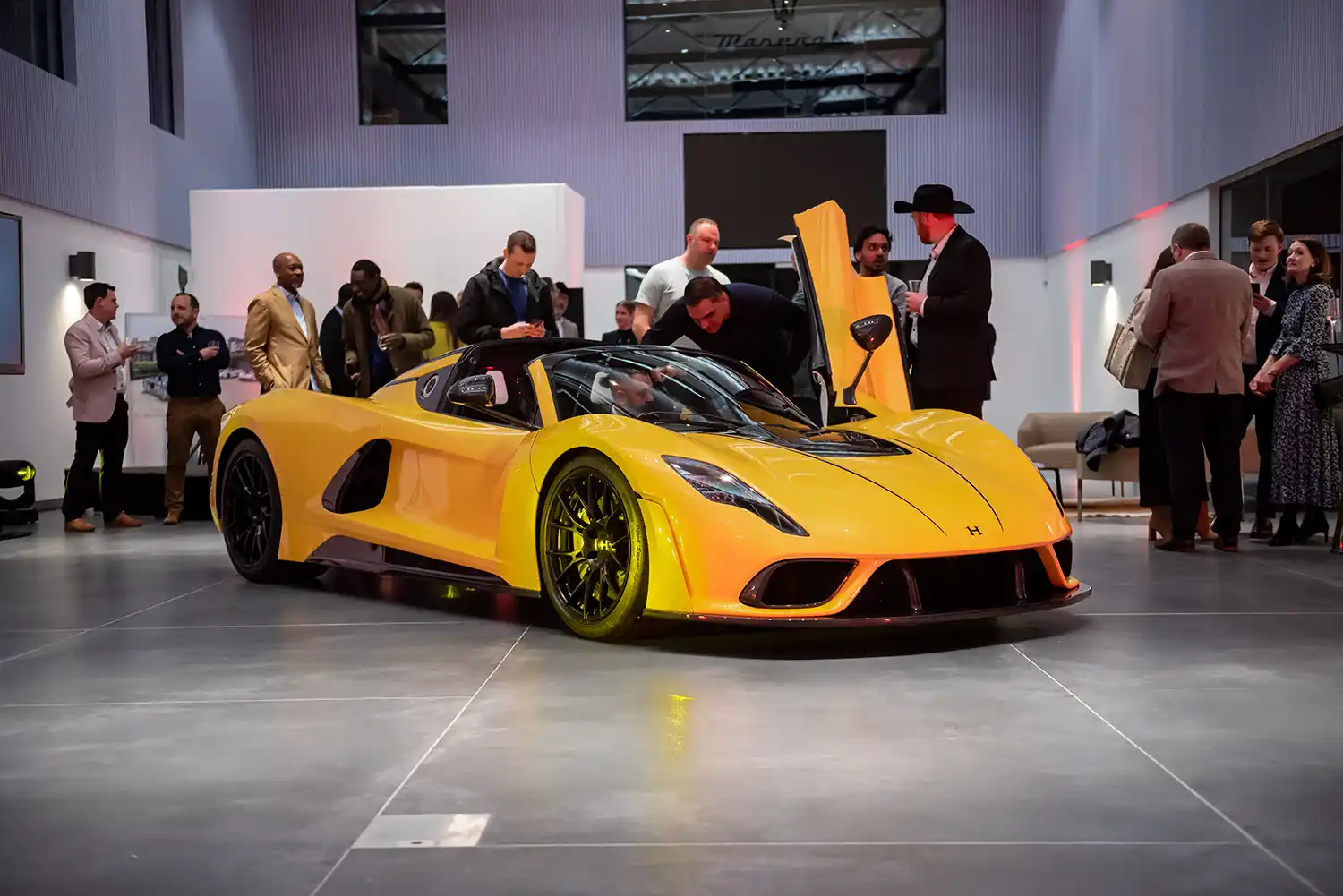 H.R. Owen – the UK’s leading luxury automotive dealer group hosted an exclusive launch event for the Hennessey Venom F5 Roadster at its new flagship 110,000 sq/ft multi-marque showroom facility in Hatfield. The F5 – a 1,817bhp V8 hypercar aiming to be the fastest roadster in the world – was introduced to a select group of guests by company founder John Hennessey, Hennessey Director of Design Nathan Malinick, Hennessey test pilot and professional racing driver Alex Brundle, and H.R. Owen Chief Executive Ken Choo.