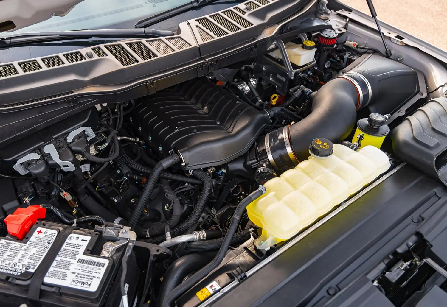 In stock form, the Ford F-150 optioned with the 5.0-liter Ti-VCT V8 is rated at 400 hp and 410 lb-ft of torque. Hennessey’s expert technicians, who have been ‘making fast cars faster’ for more than 30 years, bolt on a 3.0-liter supercharger to increase intake pressure and add an air-to-water intercooler to lower the charge temperature. The fuel injectors and fuel system are upgraded, and a high-flow air induction system is installed. A stainless-steel cat-back exhaust is mounted to reduce back pressure and improve the exhaust note.