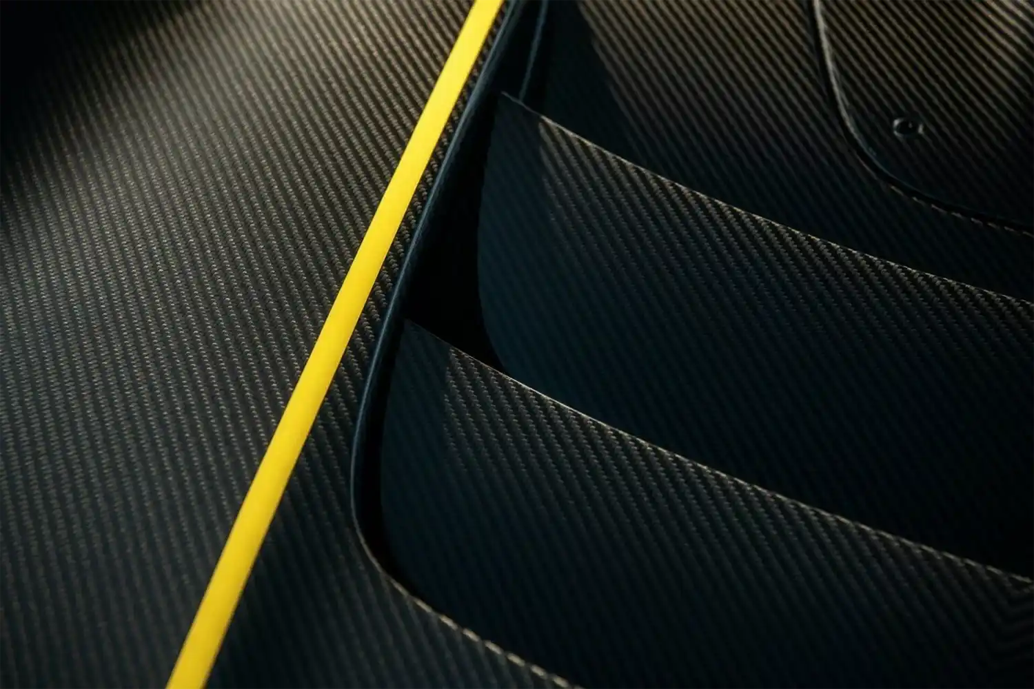The debut of the Venom F5 Revolution Roadster at The Quail, a Motorsports Gathering, reveals the first of five limited-edition ‘Bare Carbon’ models. Each individually commissioned hypercar of this series boasts a hand-placed carbon-fiber weave methodically arranged in a herringbone pattern to accentuate the F5’s graceful lines. A deeply polished clearcoat protects the exposed composite, while bright opaque paint offers stunning visual contrast from every angle.