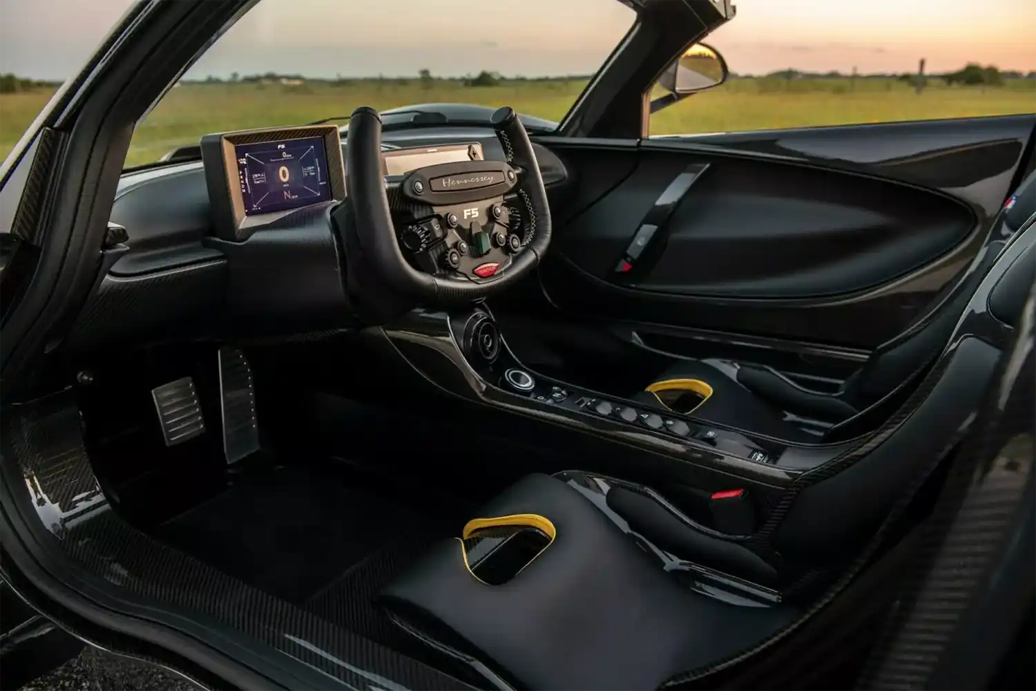 John Hennessey, company founder and CEO: “The new Venom F5 Revolution Roadster combines our track-focused hypercar with an open-top for an unmatched visceral driving experience. This first example, a bespoke build for a special client, debuts our bare carbon finish with its meticulous handcrafted exposed carbon-fiber weave. Our hypercar is a timeless work of art that is as visually inspiring as it is physically engaging, thanks to its 1,817-hp combustion-only twin-turbocharged V8.”