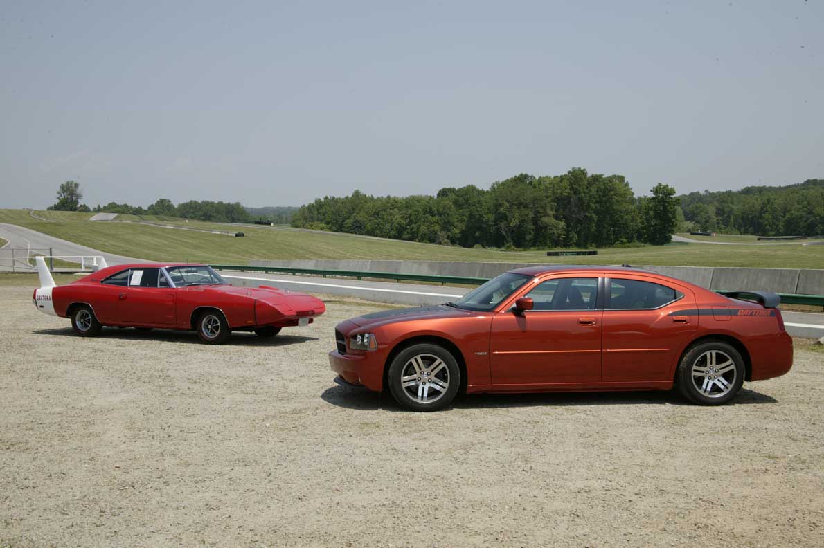 The Dodge Charger was reintroduced for 2006 with a limited production Dodge Charger Daytona package that included a sportier interior, classic high impact exterior colors, a rear spoiler, a front chin spoiler, a blacked out grille surround, rear quarter panel striping reading “DAYTONA” on either side, a blackout vinyl between the taillights on the decklid, and a black vinyl on the hood with the word “HEMI” cut out twice. Heritage R/T badges replaced the Stock R/T’s chrome badges. A performance suspension with load-leveling rear shocks was also standard, as well as unique wheels. 2006 wheels were the stock R/T 18″ wheels with charcoal grey painted pockets, and lower profile wider tires. 2007 to 2009 wheels are 20″ chrome clad wheels. In 2008, the rear quarter panel stripes were removed, and replaced with a strobe stripe on the lower portions of the doors that reads “DAYTONA” towards the front of the stripe. The hood decal was also modified. The 2006–2008 Daytona gains 10 hp (7 kW) over the standard Charger R/T via a freer flowing exhaust system featuring a single pass center muffler, and a larger diameter stock air cleaner giving it 350 hp. The car also had unique engine management software that removed the stock R/T speed limiter. The 2009 features the new Variable Camshaft Timing HEMI, producing 368 hp (274 kW). These are the First Daytona’s to wear a badge listing the number it was produced out of total production numbers