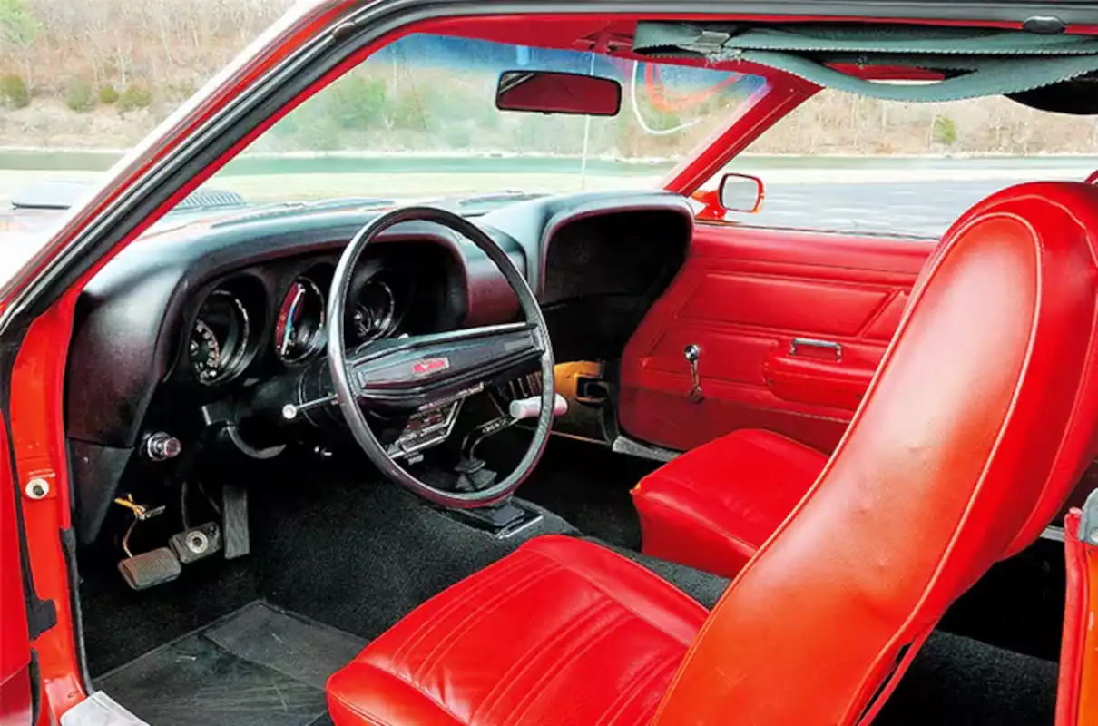 Changes for the 1970 model year included side “hockey stick” stripes which started along the top of the hood, along with the 1970 grille which replaced the four headlights with two vents in the outside position while retaining dual headlights within the grille opening. The dual exhaust system was redesigned, along with the competition suspension and a standard Hurst shifter. The intake valves were slightly smaller, and cast aluminum valve covers replaced the chrome. With a suggested price of $3,720, a total of 7,013 were sold.