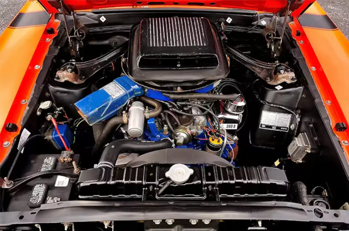 All cars came with 4-speed manual transmissions. The huge engine shoehorned into even a modified Mustang front end left no room for air conditioning. Some early cars were known as “S” code cars and as such had a slightly different engine, with magnesium valve covers, NASCAR style forged internals, and close to no smog or emissions equipment. They are said to be more powerful than the later “T” and “A” code engines (which had the emissions related equipment to satisfy government regulations). The engines in some cases were removed from the cars for use in other applications such as tractor pulling, due to the extreme torque and horsepower the engine was capable of producing.