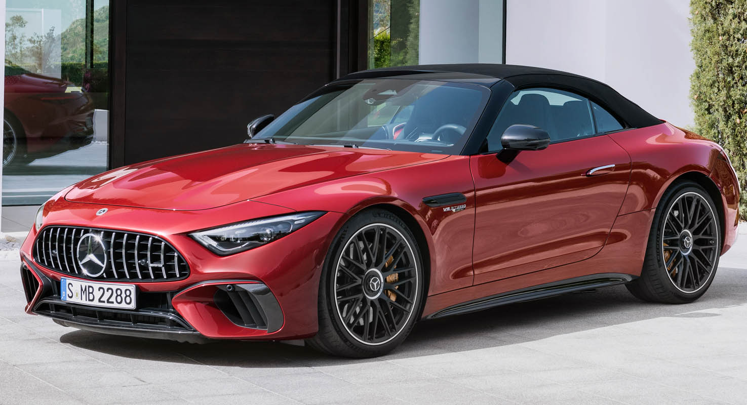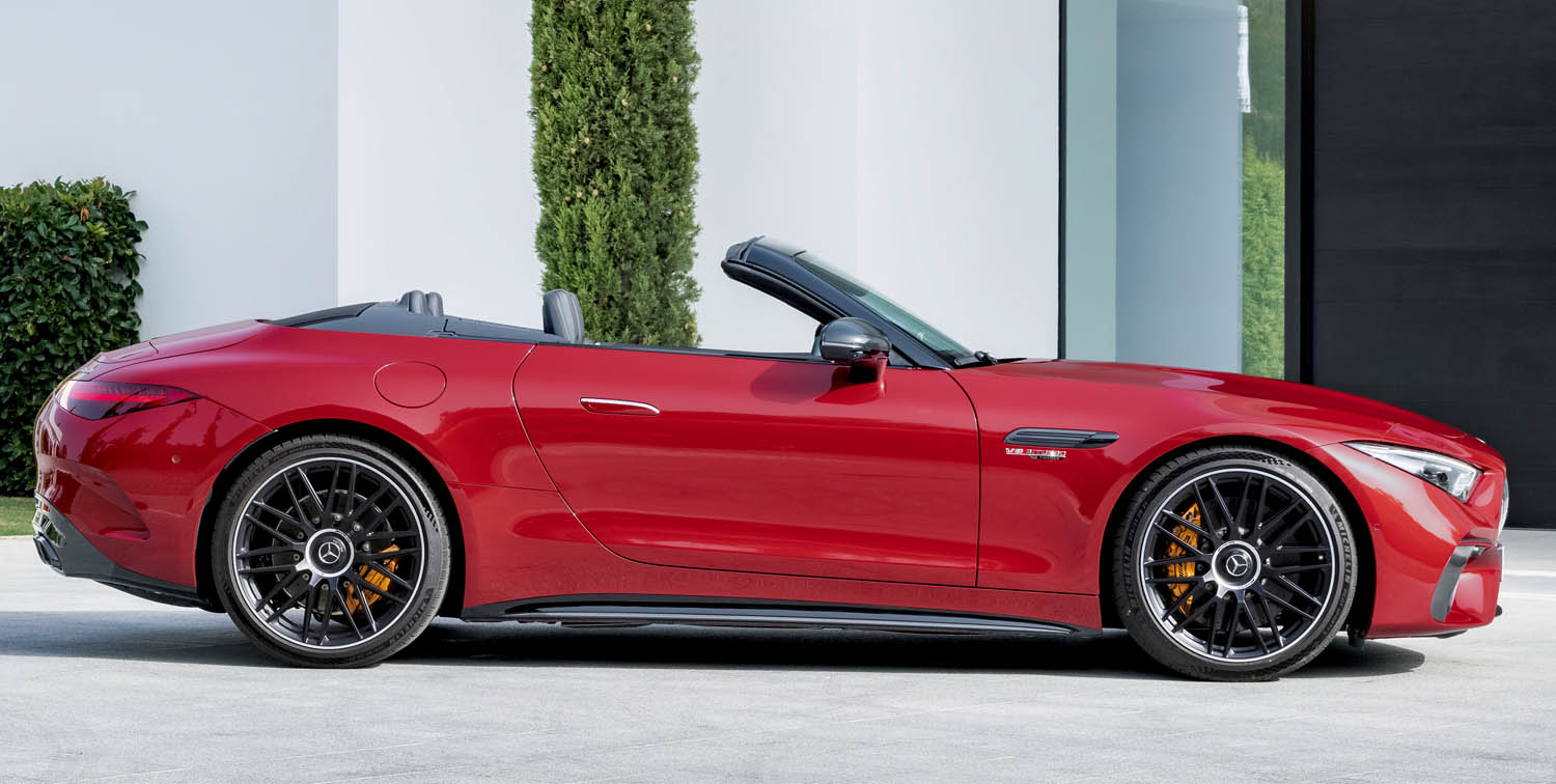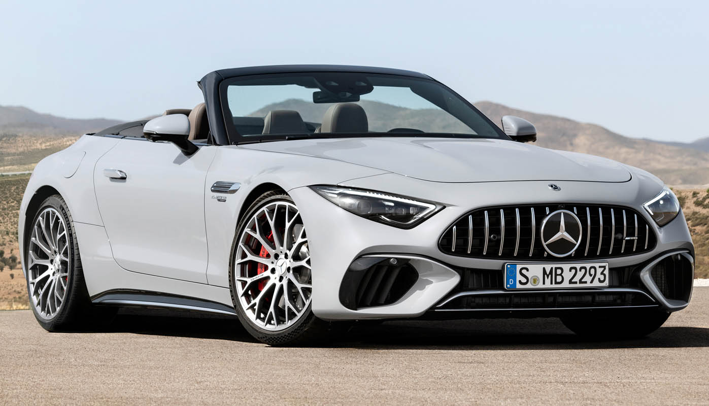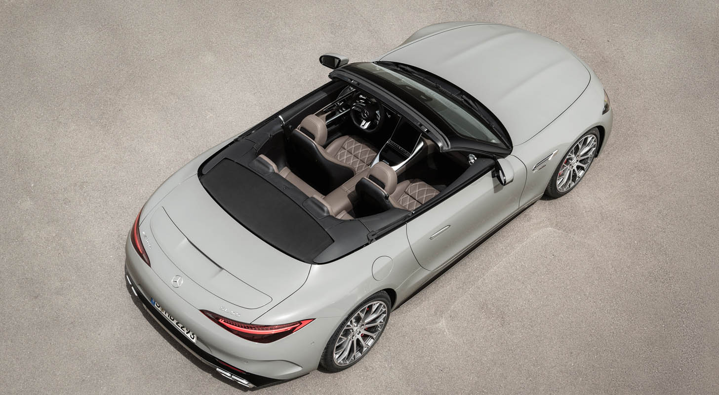 The new Mercedes-AMG SL (R 232) is the latest reissue of an icon. The sports car and performance brand unveiled it in 2021. With a classic soft top and sporty character, it fits seamlessly into the brilliant history. At the same time, the luxurious Roadster as a 2+2 seater is particularly suitable for everyday use and puts its power down on the road with all-wheel drive for the first time. The comprehensive technology equipment includes highlights such as the AMG ACTIVE RIDE CONTROL suspension with active roll stabilisation, rear-axle steering, the optionally available AMG ceramic high-performance compound brake system or the standard-fit DIGITAL LIGHT with projection function. Mercedes-AMG in Affalterbach has developed the SL completely independently as a consistent Performance Luxury model. The market launch is kicked off with two models featuring AMG V8 biturbo engines.