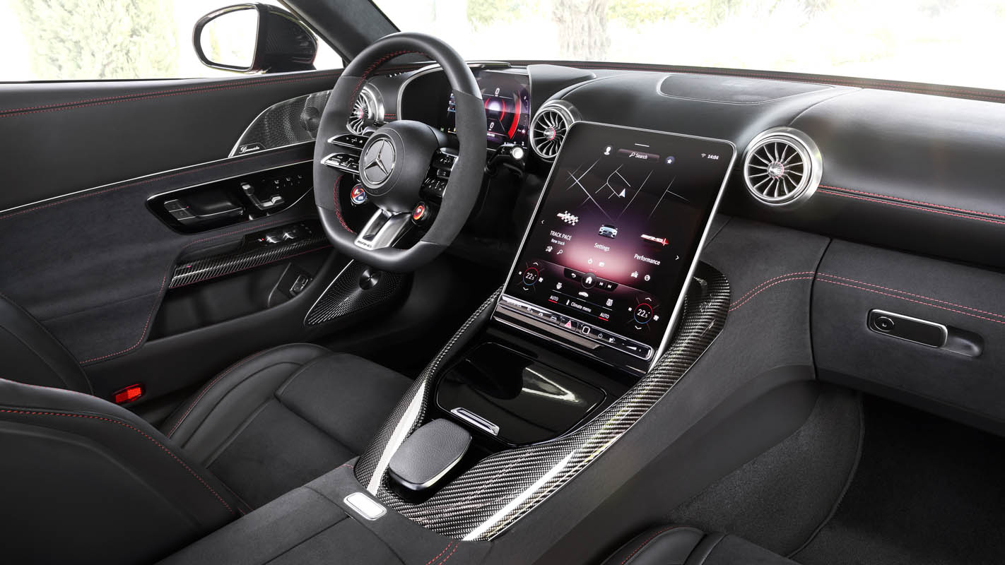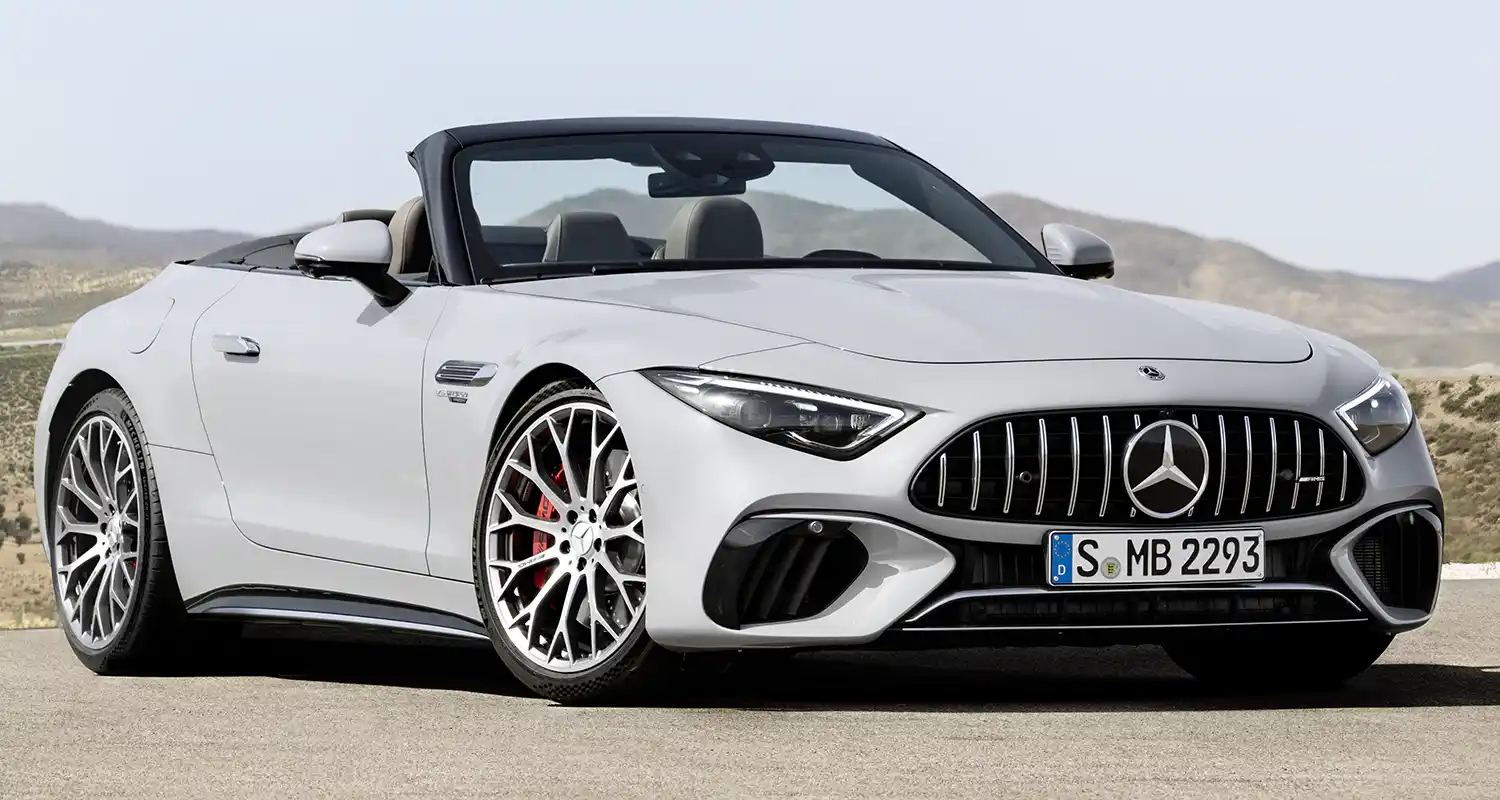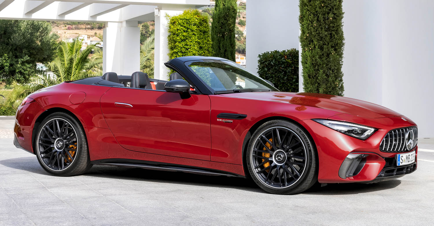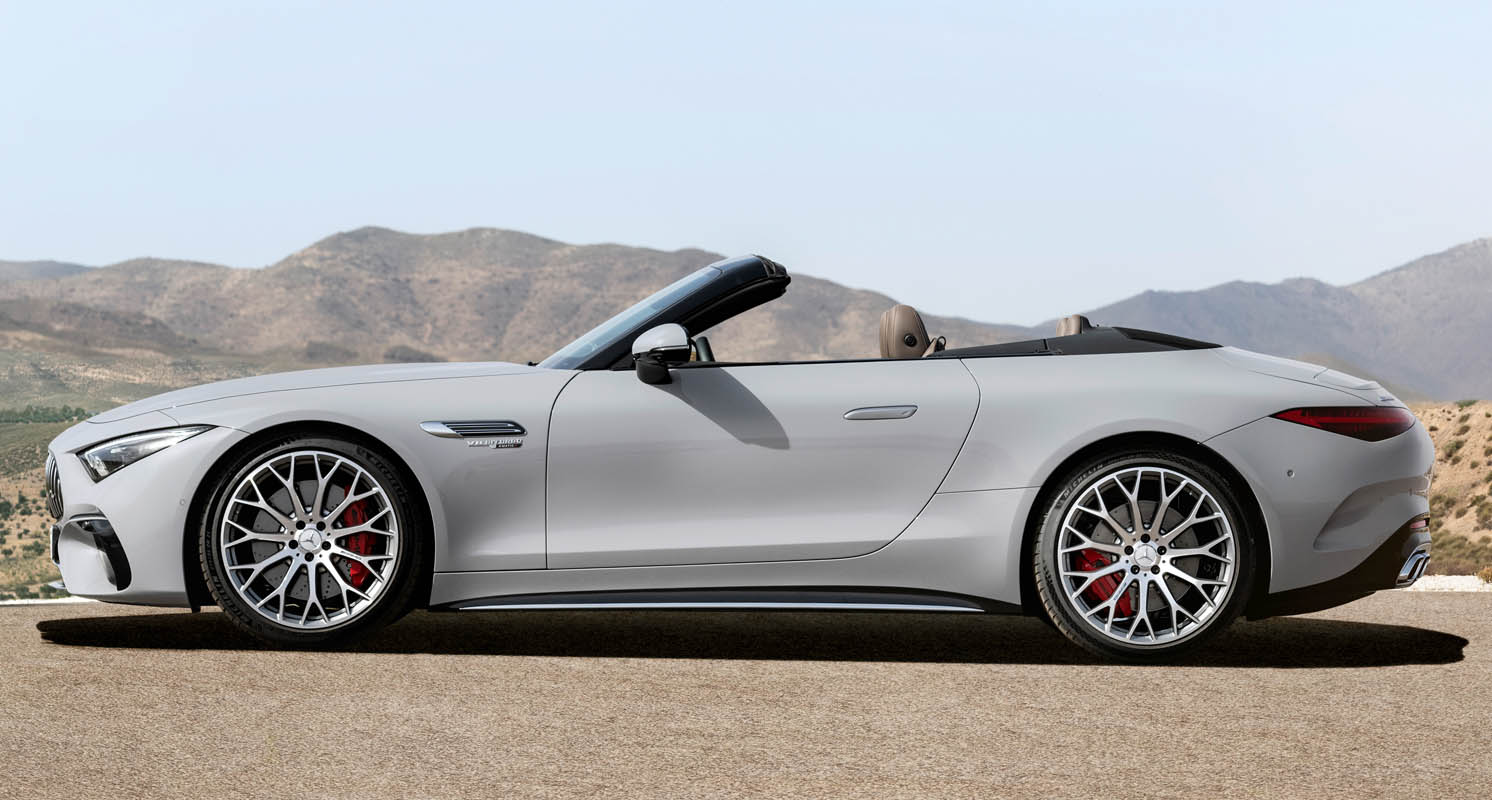 The new Mercedes-AMG SL (R 232) is the latest reissue of an icon. The sports car and performance brand unveiled it in 2021. With a classic soft top and sporty character, it fits seamlessly into the brilliant history. At the same time, the luxurious Roadster as a 2+2 seater is particularly suitable for everyday use and puts its power down on the road with all-wheel drive for the first time. The comprehensive technology equipment includes highlights such as the AMG ACTIVE RIDE CONTROL suspension with active roll stabilisation, rear-axle steering, the optionally available AMG ceramic high-performance compound brake system or the standard-fit DIGITAL LIGHT with projection function. Mercedes-AMG in Affalterbach has developed the SL completely independently as a consistent Performance Luxury model. The market launch is kicked off with two models featuring AMG V8 biturbo engines.
