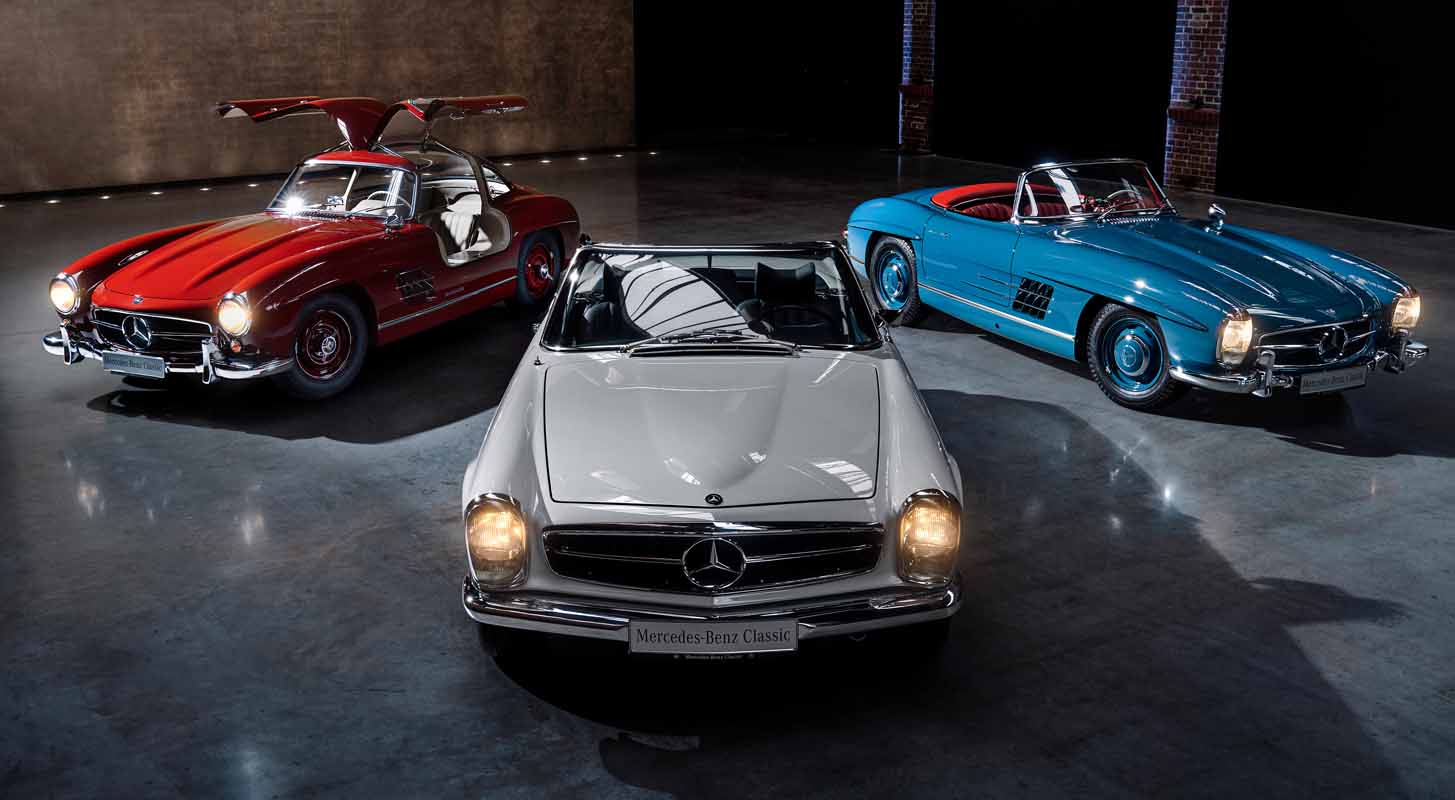 The two letters SL are the world-famous hallmark and distinction of a unique Mercedes-Benz sports car tradition: for 70 years, the abbreviation has stood for “super-light” and thus for sporty motoring – from the 300 SL racing sports car (W 194) from 1952 to the latest SL in the 232 model series from the sports car and performance brand Mercedes-AMG. The forefather W 194 remains reserved for motorsport, but in doing so it conveys an important Mercedes-Benz brand value: as the oldest luxury car manufacturer in the world, the brand has been involved in motorsport for many eras – and has been highly successful. From the 300 SL Coupé (W 198) onwards, sportiness, luxury and lifestyle have been the attributes of every SL.