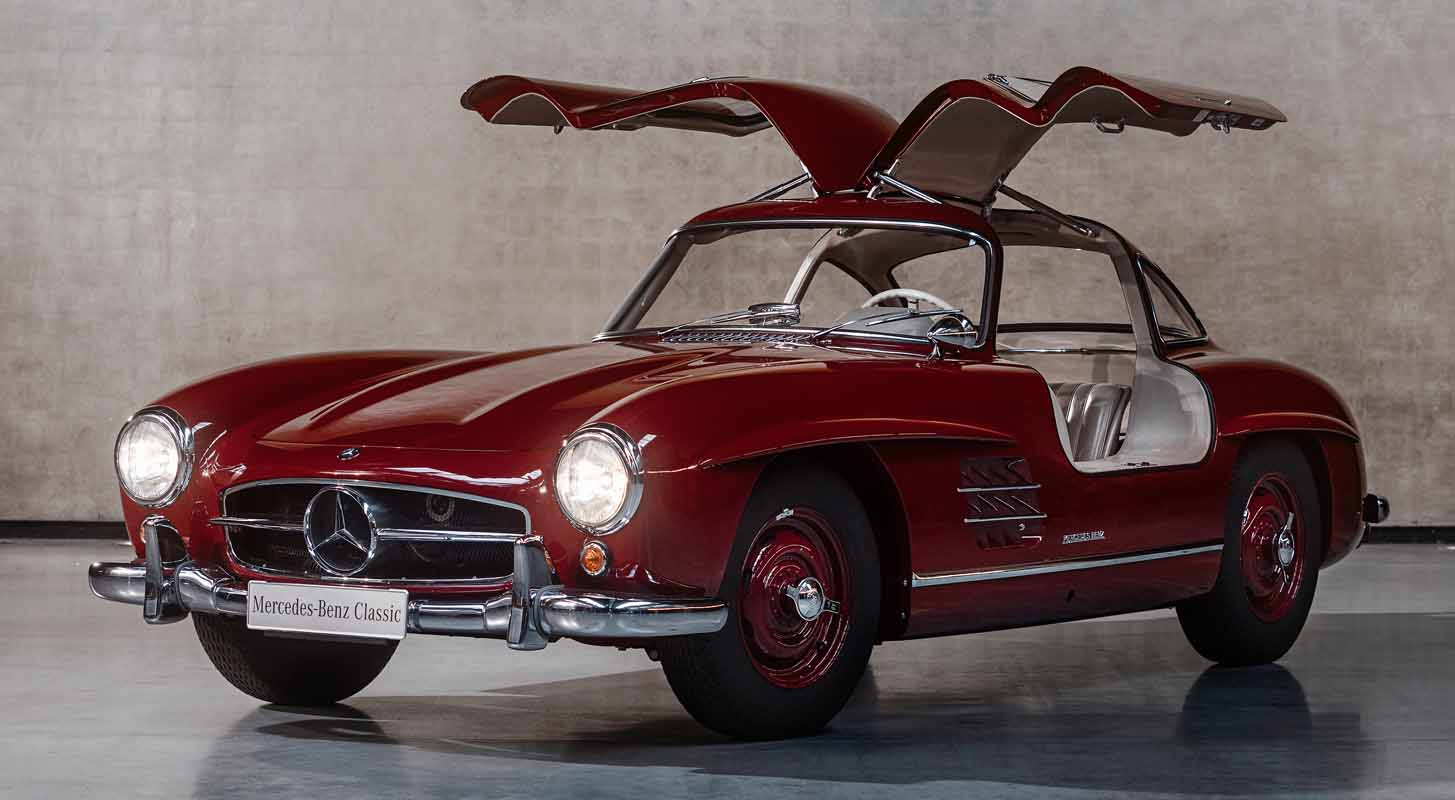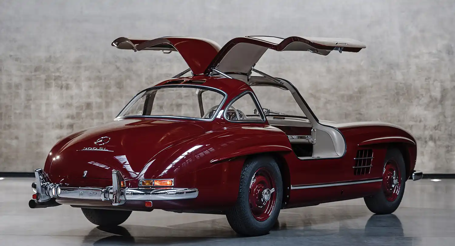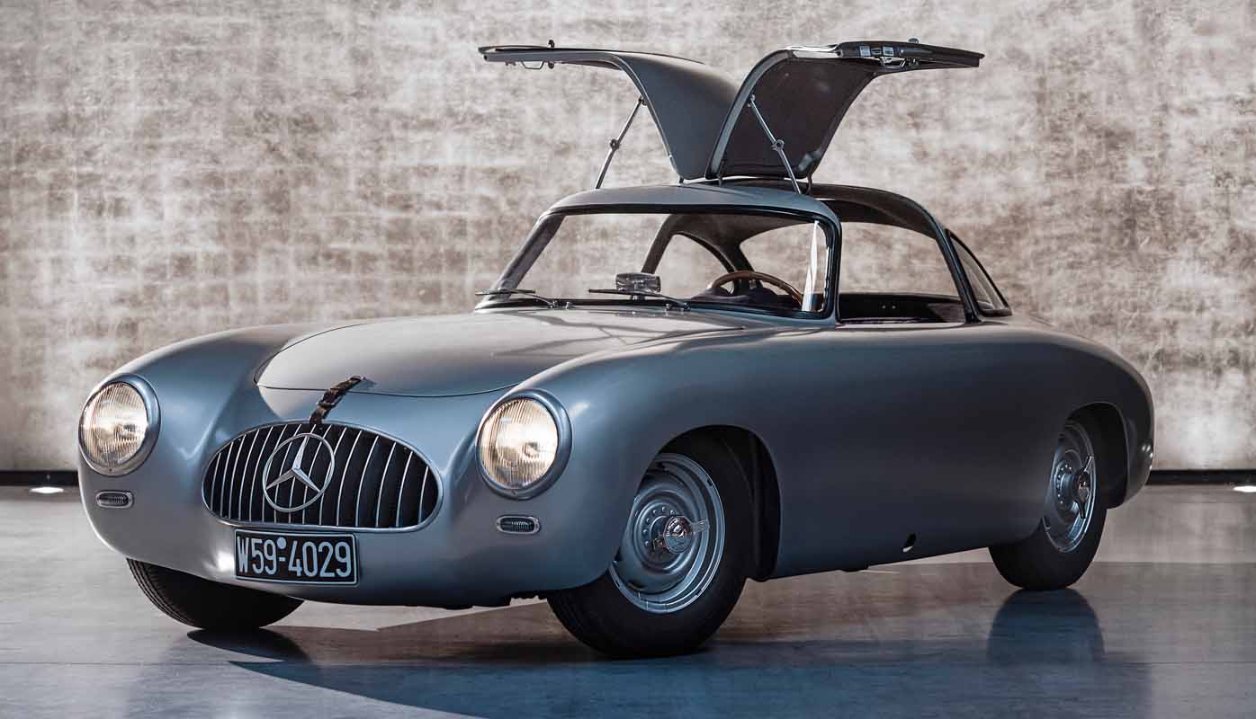 Calls for a production version of the successful racing car quickly became loud. Mercedes-Benz reacted and presented the 300 SL Coupé (W 198), the legendary “Gullwing” sports car, as early as 1954. Only 1,400 units of the coveted sports car, with the characteristic doors hinged on the roof due to the roll cage, were built. Today, these classics achieve prices well beyond one million euros.