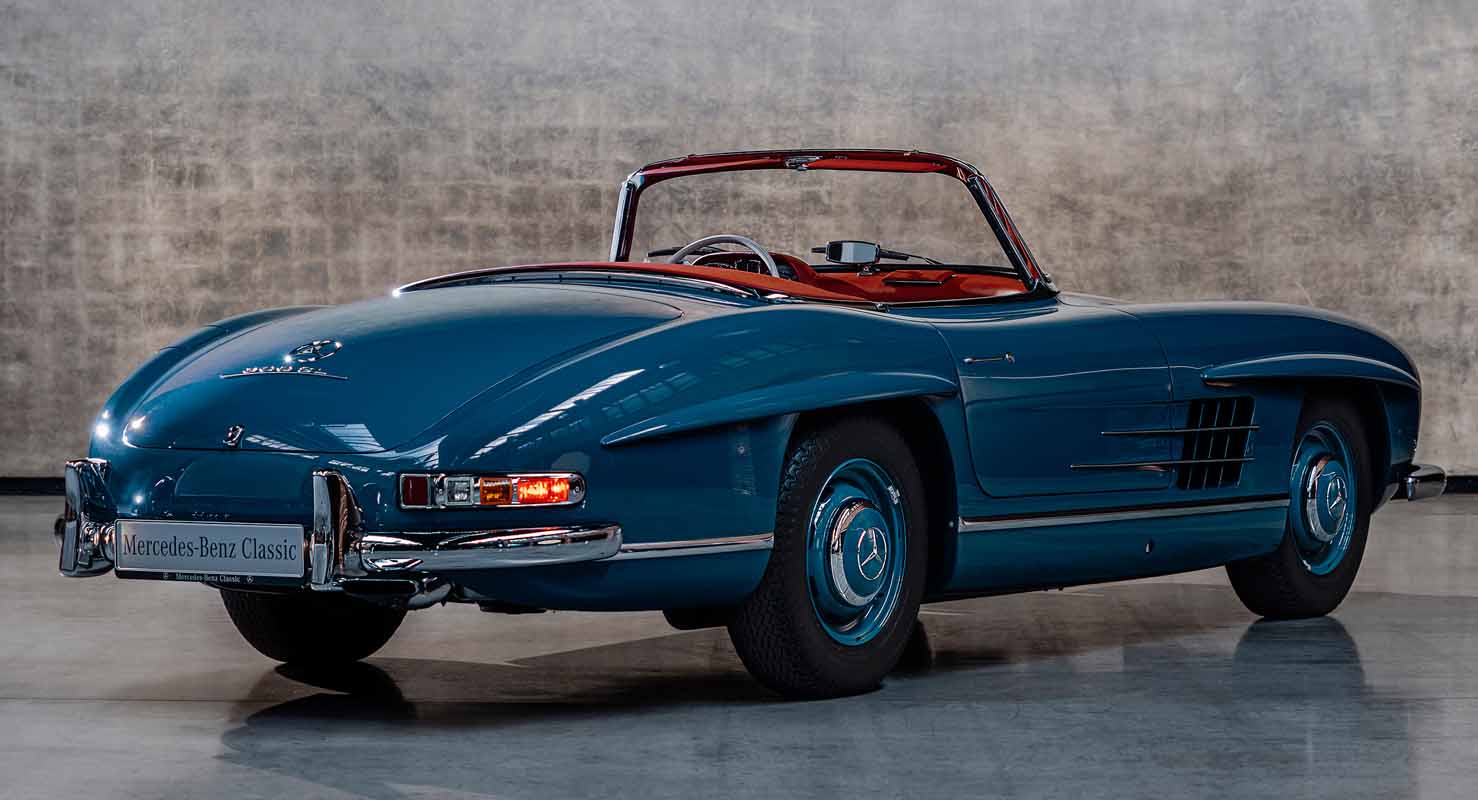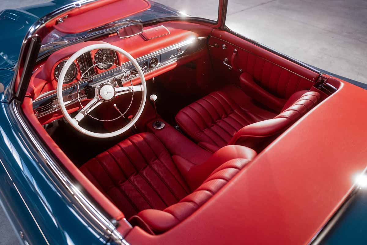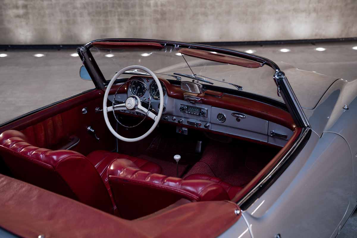 In 1957, the 300 SL Roadster (W 198) followed the “Gullwing” Coupé. Like its predecessor, this car was created on the initiative of Maximilian E. Hoffmann. In technical terms, the Roadster largely corresponds to the Coupé. However, by modifying the side parts of the roll cage, the entry could now be reduced to such an extent that normal, front-hinged doors could be realised.
