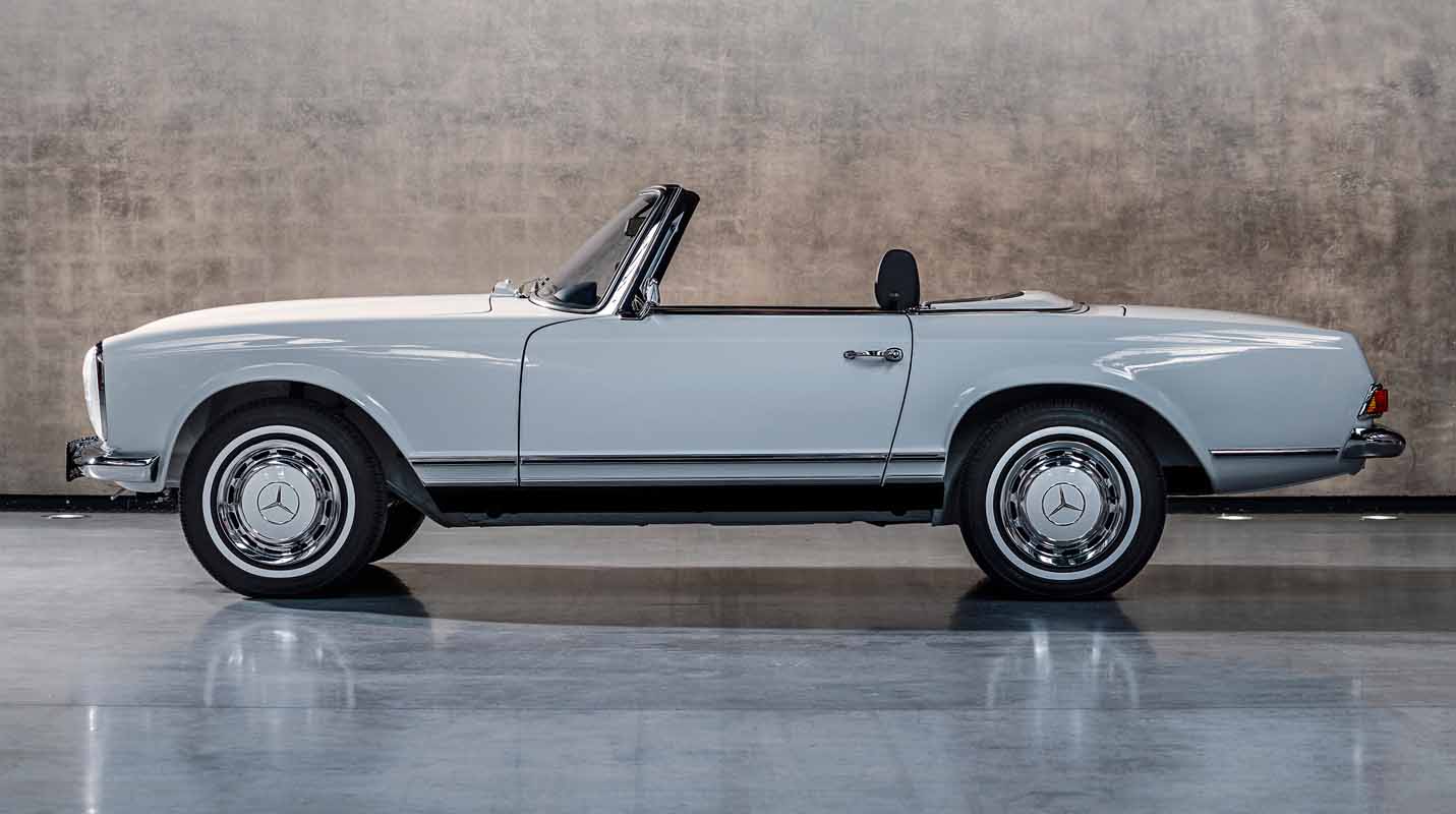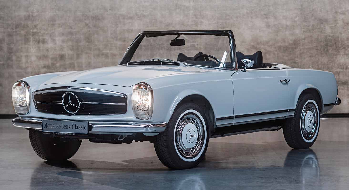 In 1963, the 230 SL (W 113) replaced both the 300 SL Roadster and the 190 SL. It impressed with sportiness, comfort and safety and has since been a trailblazer for the SL tradition. The optional hardtop with its high windows and the concave shaped roof supported by narrow pillars was reminiscent of Asian temple buildings, which quickly earned the W 113 the nickname “Pagoda”.