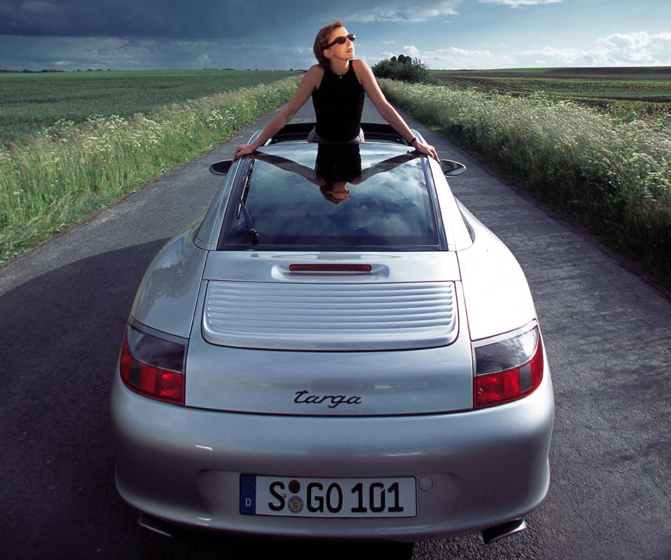 The classic Targa idea was successfully combined with state-of-the-art roof convenience for the first time. Just like the legendary original Targa, the new model had the characteristic wide bar in place of B-pillars, a moving roof section above the front seats, and a wrap-around rear window without a C-pillar.