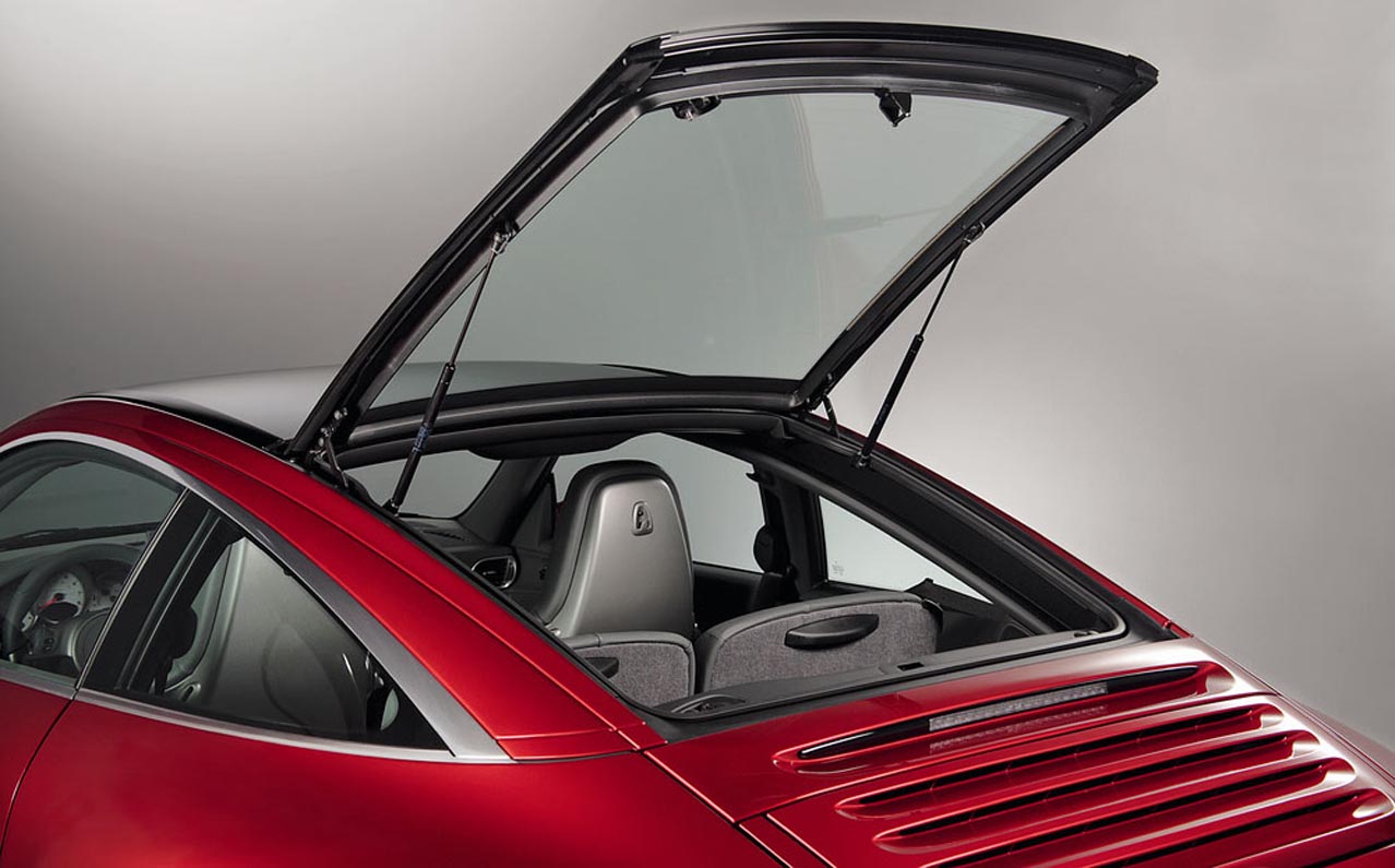 Just like its predecessor, the 911 Targa had an electrically operated glass roof, now with a surface area of more than 1.5 square metres. There had never before been that much glass surface area in a Porsche 911. The new Targa was also the first 911 to provide a rear window that could be folded up. This made it easy to access the rear storage compartment with up to 230 litres storage space to load suitcases, bags or other luggage.