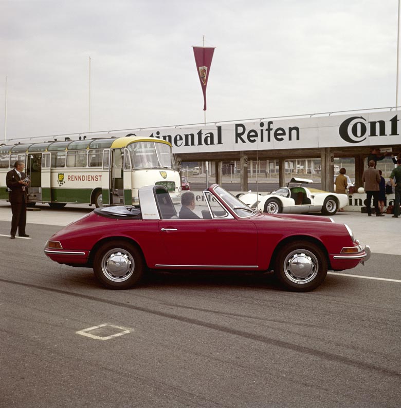 In August 1965, Porsche applied for a patent for the Targa concept and from autumn 1966 the Targa supplemented the Coupé for the 911, 911 S and 912 with resounding success. From the late summer of 1967, the Targa models could also be optionally ordered with a fixed and heated rear window made of safety glass in place of the fold-down plastic rear window. A solution that became standard equipment just a year later and which remained a feature of the targa more or less unchanged until 1993.