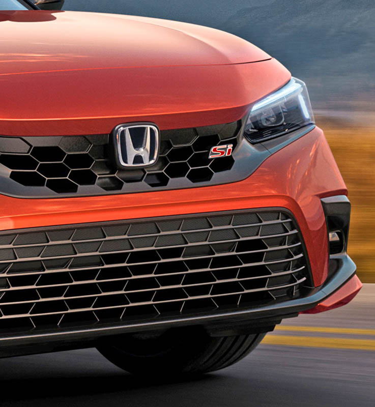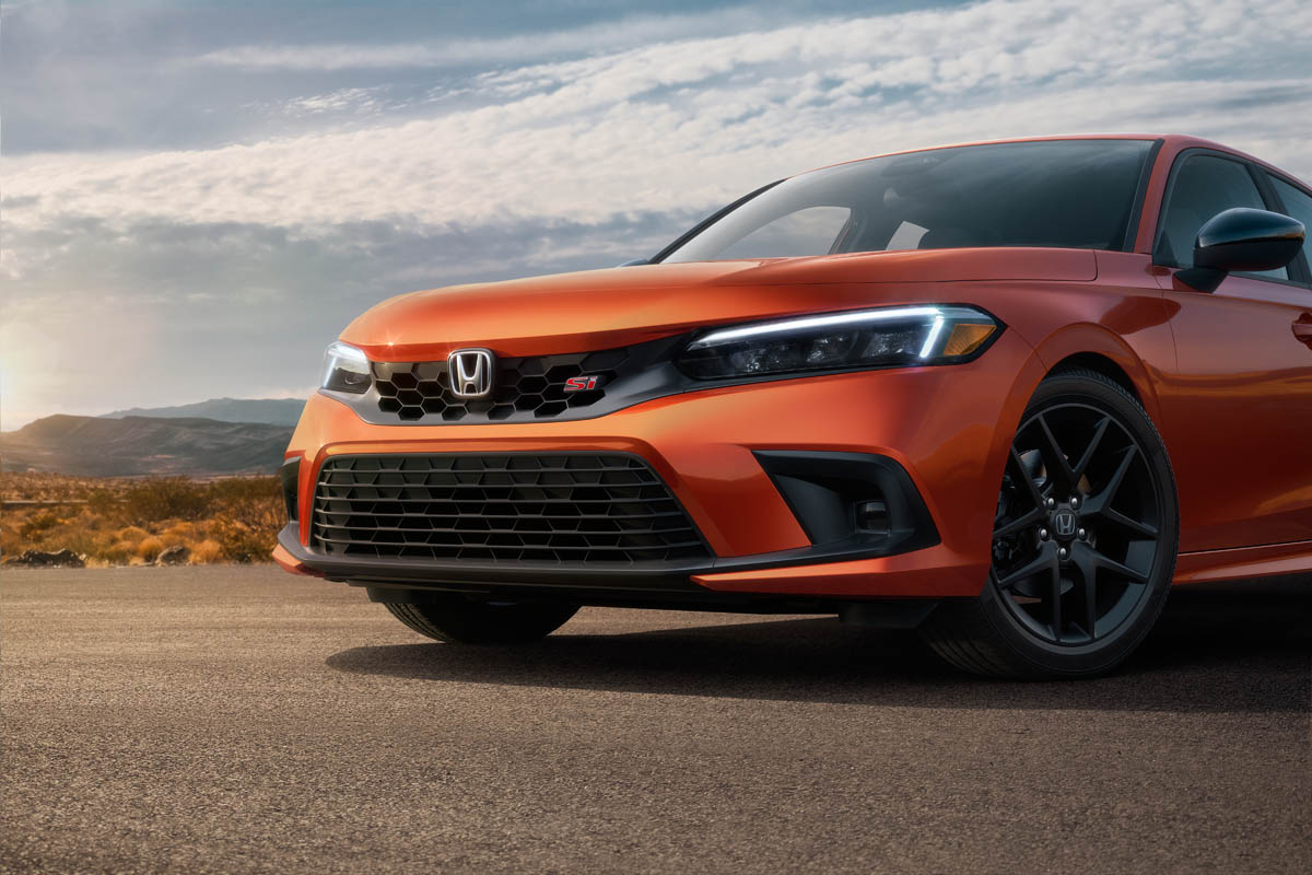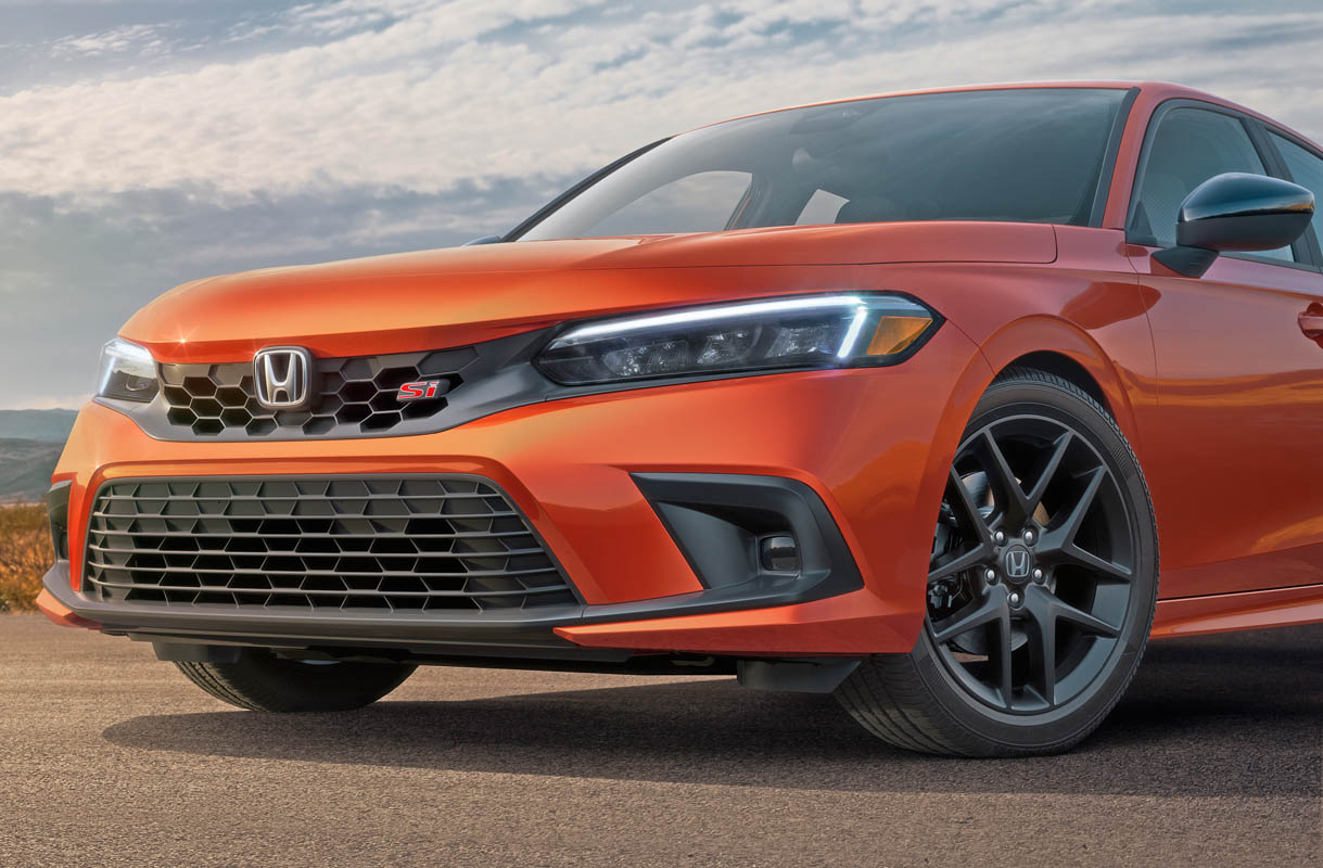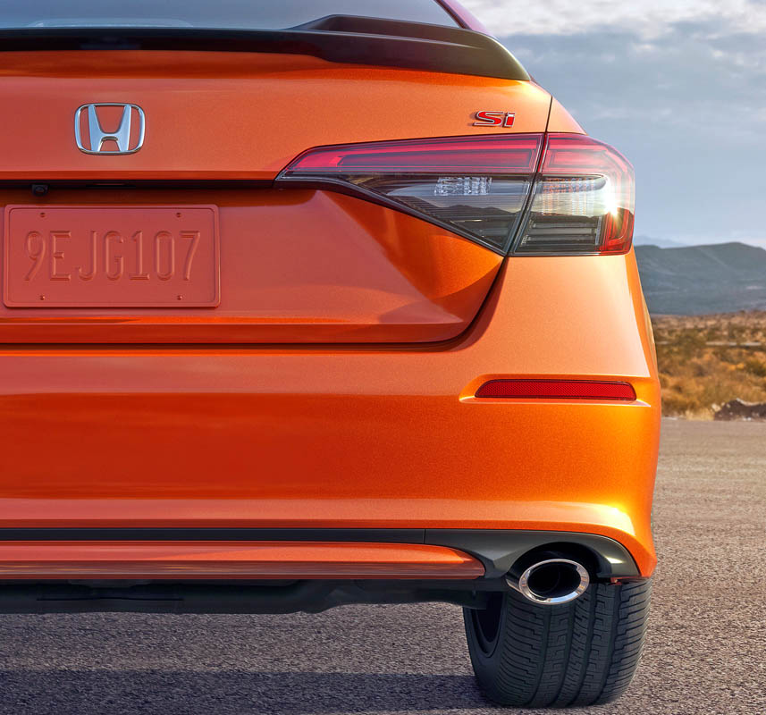 Standard 18-inch 10-spoke alloy wheels are finished in Si-specific matte black, and a new vibrant, Si-exclusive Blazing Orange Pearl paint color is available.