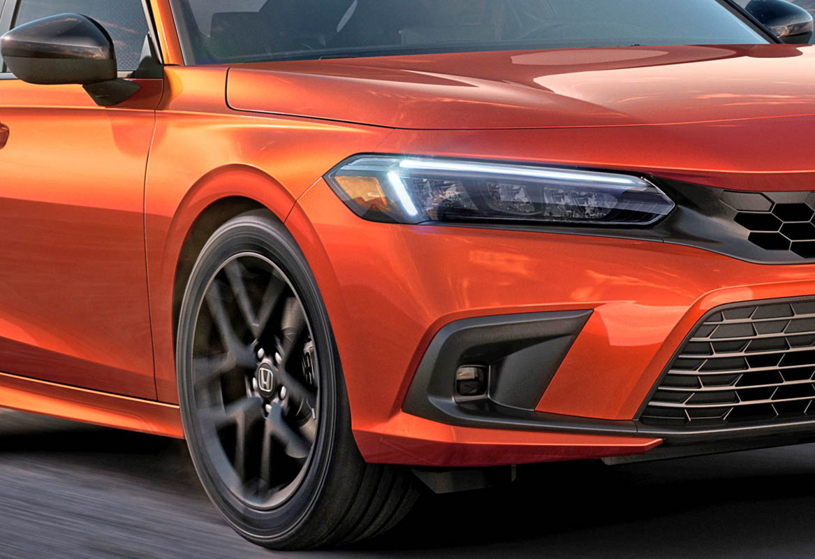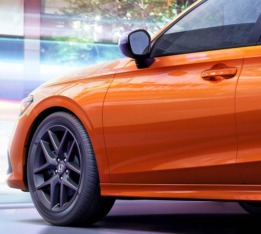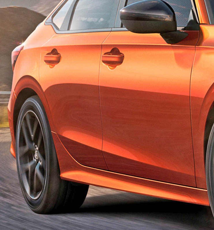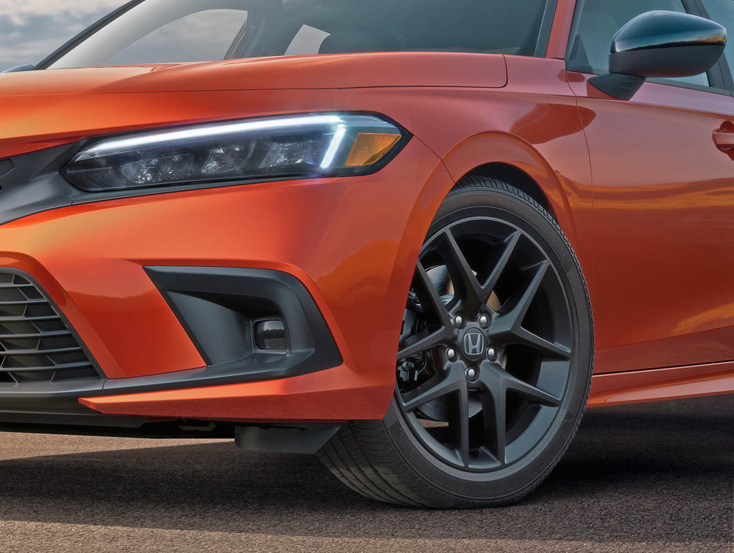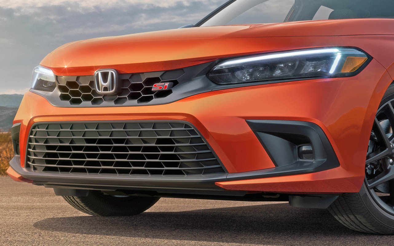 Standard 18-inch 10-spoke alloy wheels are finished in Si-specific matte black, and a new vibrant, Si-exclusive Blazing Orange Pearl paint color is available.